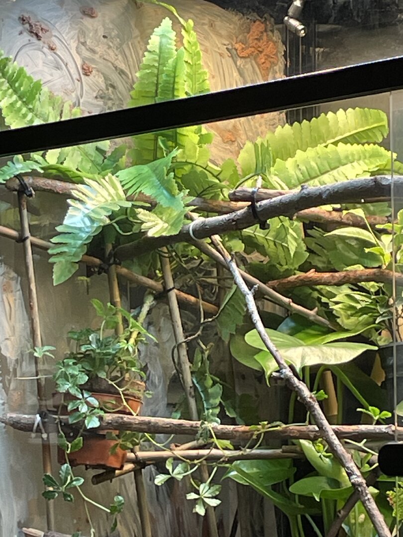 So as you all know I brought home Antwon last week and he is pretty obsessed with the glass reflection on the sides of my glass tank. I have put black paper on the outside and tons of plant leaves on the inside against the glass…but he still finds spots to surf.