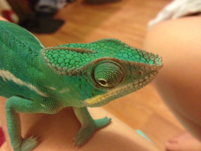 My 8 month old nosy be panther chameleon's eyes are still sunken in his head. I hardly ever take him out and he's kept in my room where its quiet, so it shouldn't be stress. His poops look completely healthy, urates are white and the top of his head is slightly rounded. What could this be? Could it be a humidity issue? I live in Alberta, Canada, its very dry here.