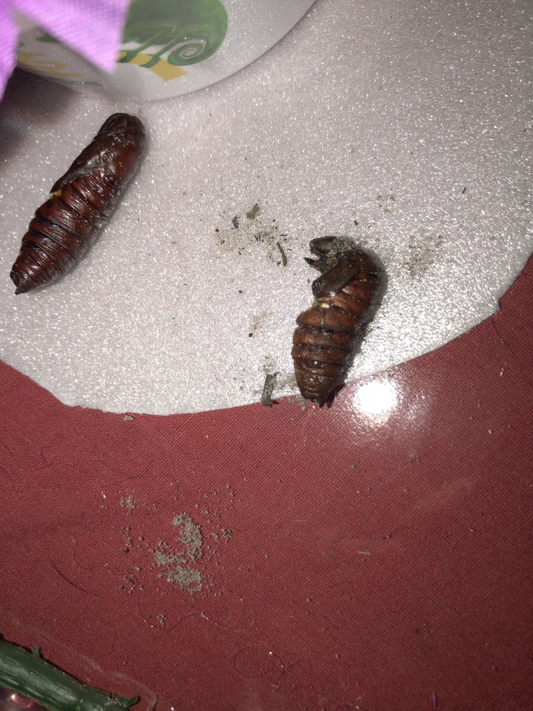 So, before these guys burrowed into the soil they were massive 4 inches long, nice big pulsing vein way bigger than my ones before on my first try. So the 4 that we’re put into the soil , 3 surfaced and became a little smaller and wriggling around a little and somewhat moving but not really, the fourth one is still in the soil so I didn’t get a pic of him I just don’t want to bug him in the process. Here are the pics of them now, do they look good? Or no?