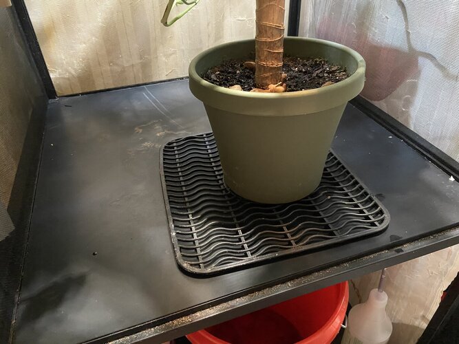 Hi! So I’m changing my panther chameleons cage to a xl reptibreeze. I previously had a hybrid glass enclosure which I was vacuuming water out of manually which gets pretty tedious having to do that constantly and makes it difficult to keep the cage hygienic. I decided to change to a xl screen enclosure (24x24x48) which is also larger than the previous enclosure. Does anyone who has the same enclosure have any recommendations or tutorials on how to create a drainage system? I know I have to drill holes in the pvc at the bottom, and that I need a bucket for the water to drain into, but where exactly do I drill the hole? What can I put the cage on top of so it’s elevated but can also allow water to drain through? (But looks decent since his cage is in my bedroom). Please let me know! Thanks so much :)