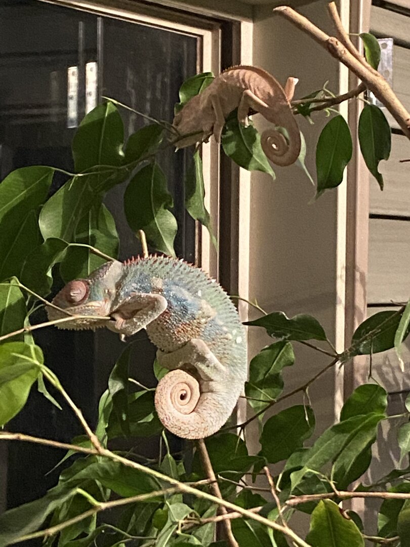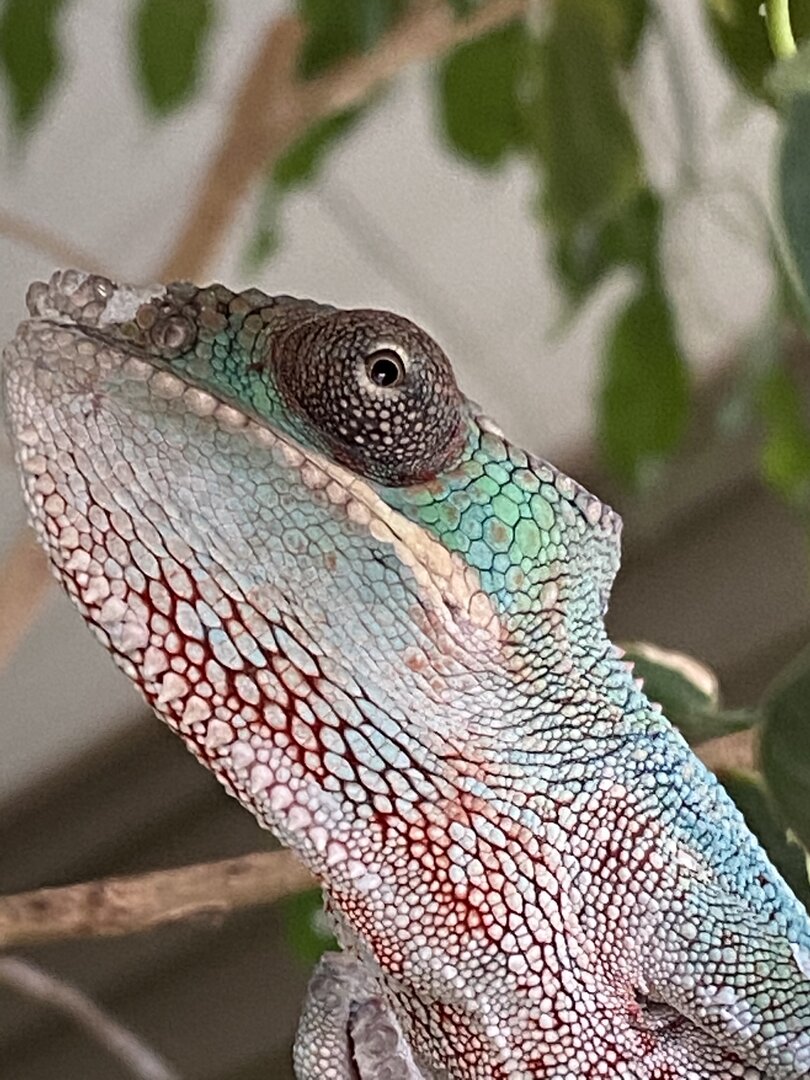 So the consensus seems to be, that the parietal eye only has photo receptiveness of Blue and Green, therefore it cannot register red color spectrum. To that end, a red light in theory should not bother a chameleons sleep cycle, however its said that it does. I truly have not seen or experienced either of these, never tried to use a "red" light at night. So I am not sure tbh, if they can sense that red light or not. Obviously we have too schools of thought on this, we have the pet company's selling these lights and the community of keepers advising against them.