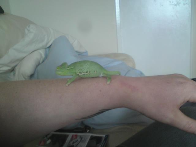 here is a pic of little lady on my arm. ive owned her only a few weeks, shes shedded, is eating, drinking, pooping fine but may have some other problems with her that you lot may be able to advise me with after i have spoken to a decent vet. thanks
