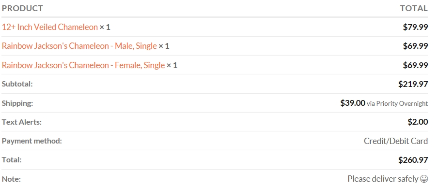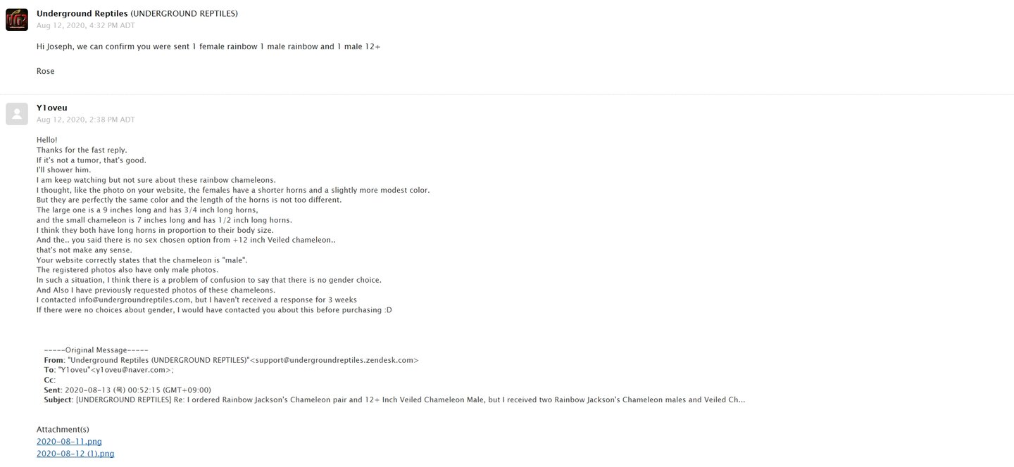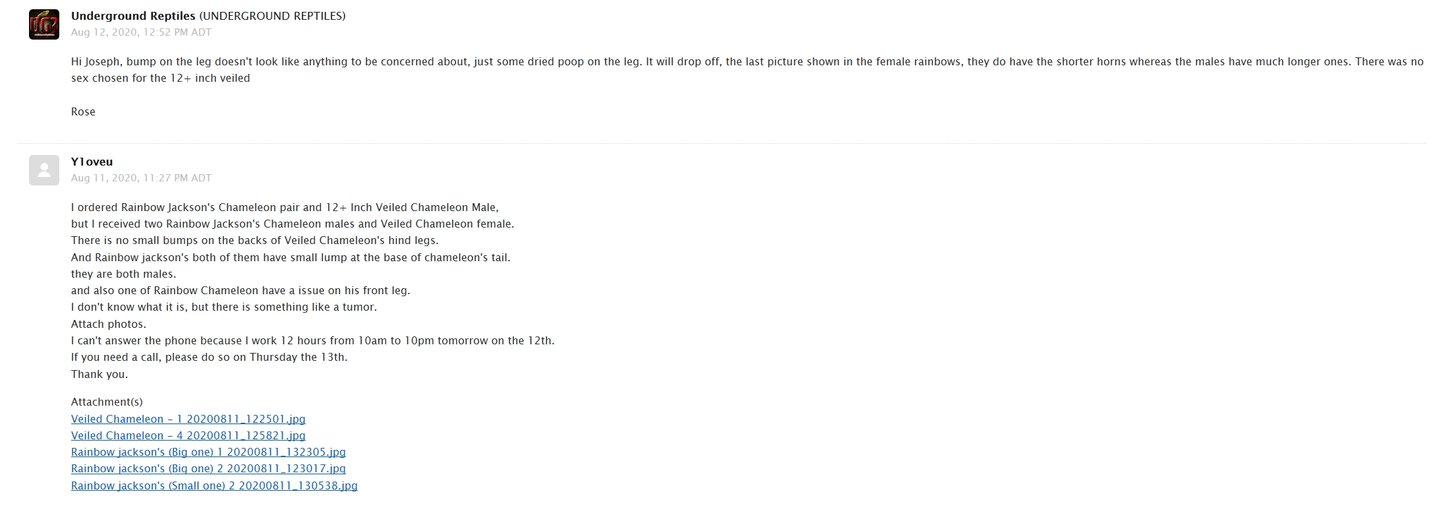 I recently purchased a Rainbow Jackson Pair and Veiled Chameleon male from the Underground Reptile Online Shop.