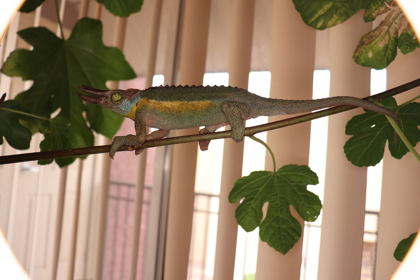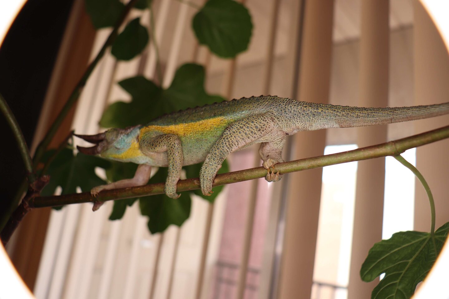 The large chameleon what they said to be male is 9 inches long, and the length of the horn is 3/4 inches.