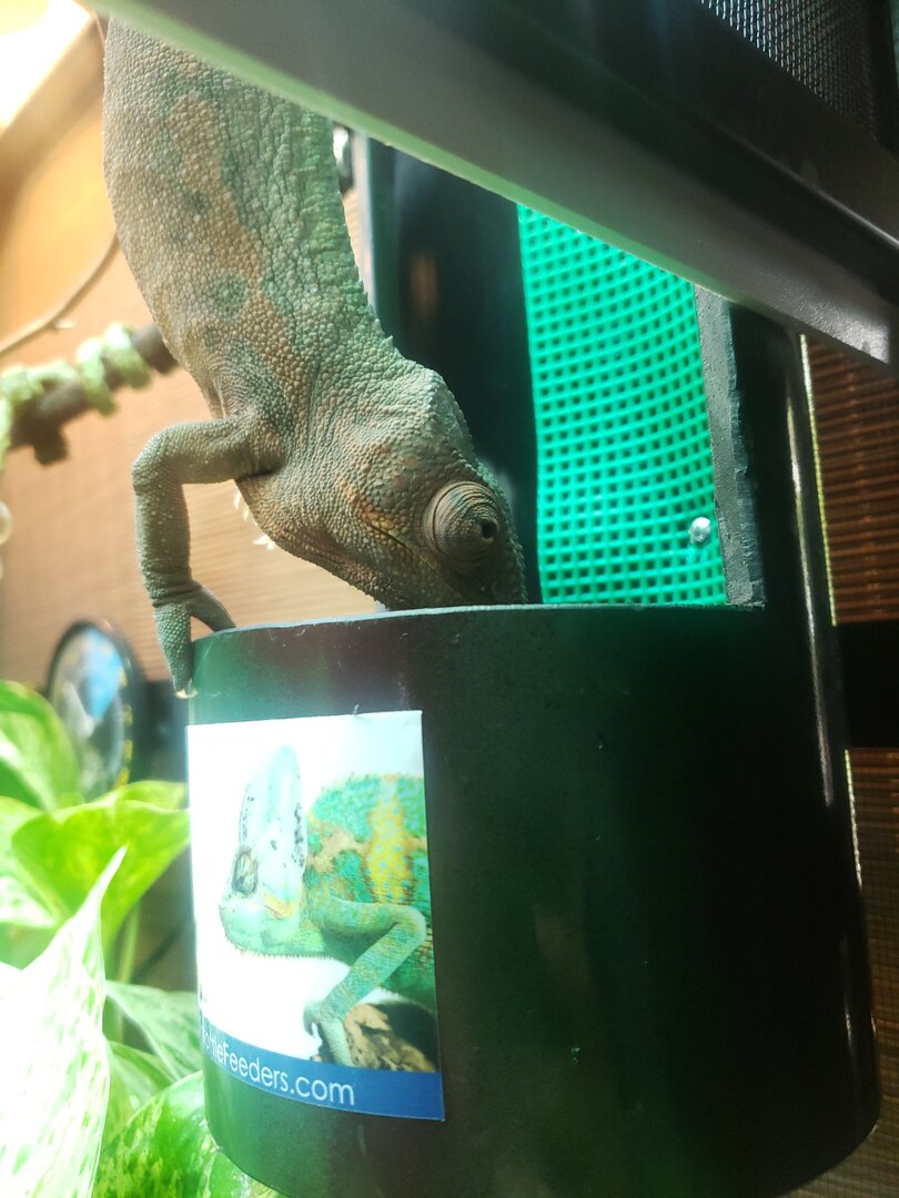 Yeah, mine is used to it so if he does not see anything crawling on the screen he will stick his head in to see if there is anything hiding on the bottom. Eventually the crickets will jump out and then it's game on.