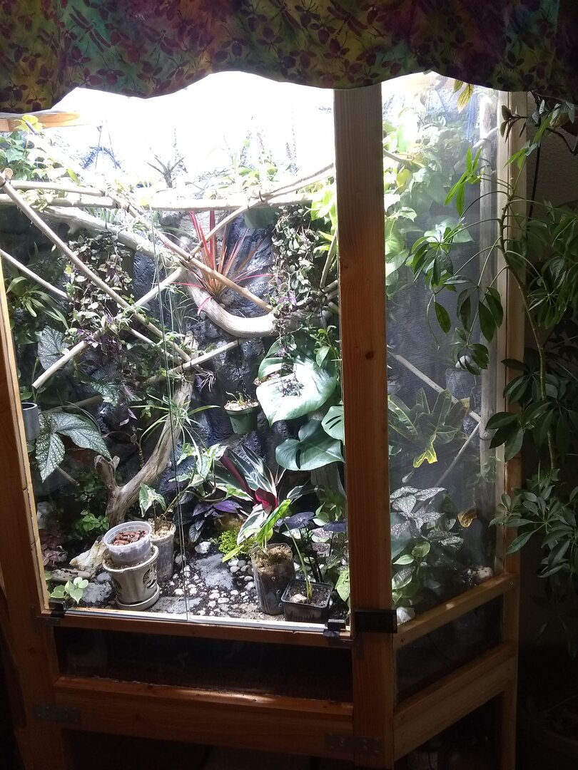 I became interested in chameleons about six months ago after seeing a Jackson’s at a local pet store. Those trippy binocular eyes! Those weird mitten feet! Finding good information about chameleon best practices has been a challenge, but this forum has been really helpful. I built my enclosure based on the principles described at chameleonacademy, and it has been a rewarding pandemic project.