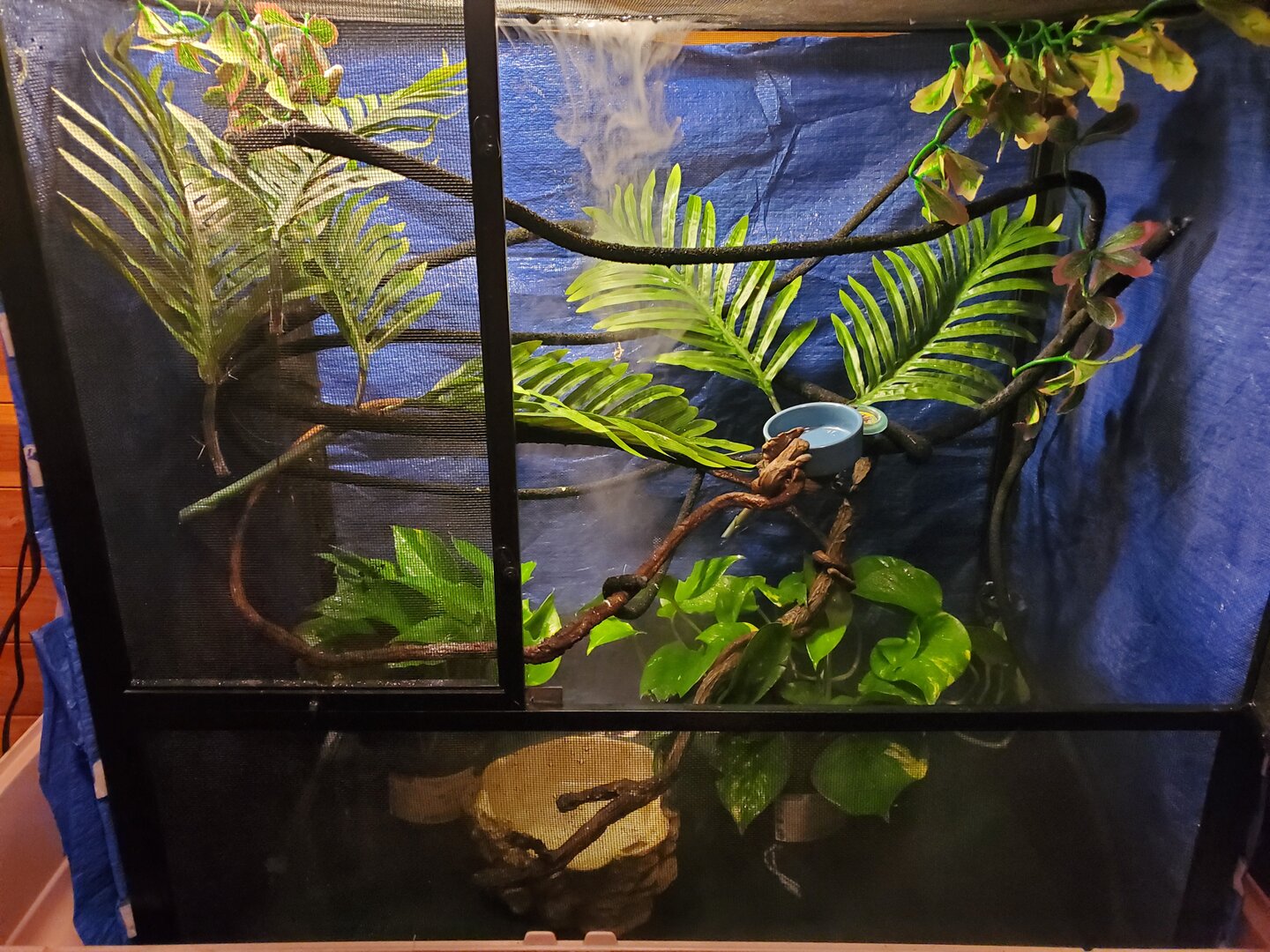 Right I totally understand plus it's not like you would have known that ya know? Lol so I put I few crickets in his home earlier he dad eat 2 maybe with him shedding and the update I did to his home adding the plants and more vines he was just stressed? I will definitely try to get the light this coming week if unemployment comes through. The tarp was all I had at the time and it worked haha, and the bowl I can get rid of or maybe put something over it he does drink for it but I also make sure its fresh and cleaned everyday in the morning and always checked thought the day, I've never seen fecal in there.