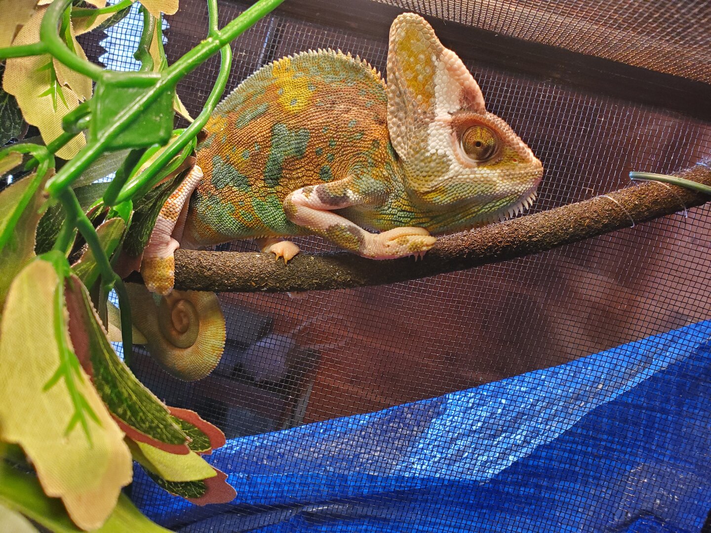 • Your Chameleon - The species, sex, and age of your chameleon. How long has it been in your care? Piebald veils, male, 9-10 inches so 6-9 months? *not sure*, in my care since 2/26
