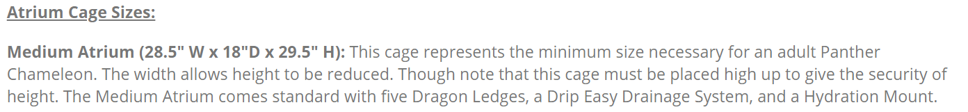 This is his Cage, and its the same size as a Medium Atrium, https://www.zillarules.com/all-products/terrariums/fresh-air-screen-habitat