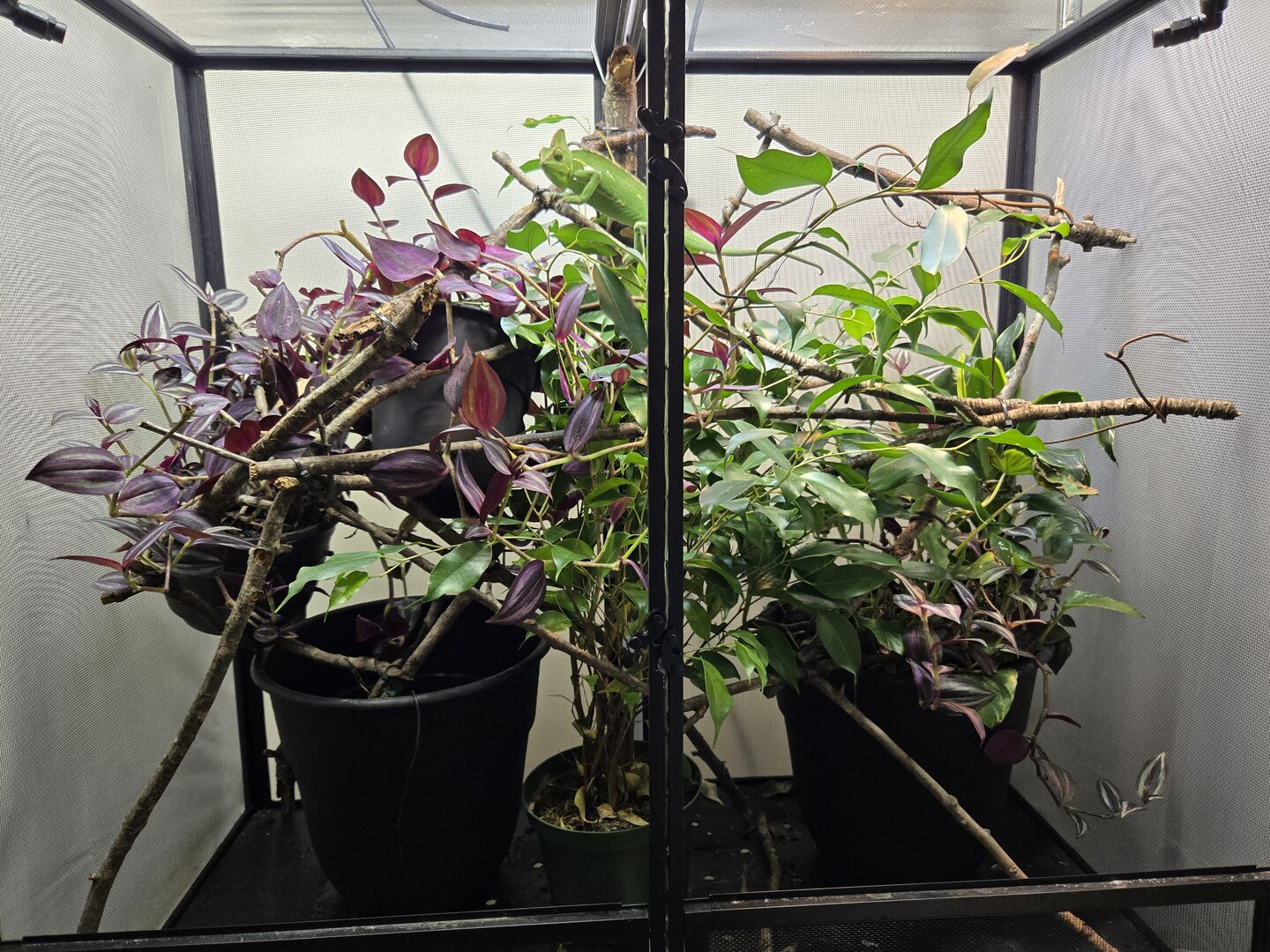 - Plants - ficus Benjamina, pothos, tradescantia, previously had some croton too but I removed it in order to put more tradescantia in instead.