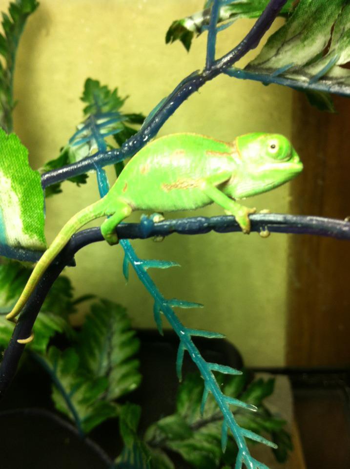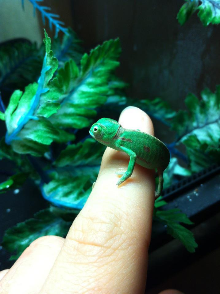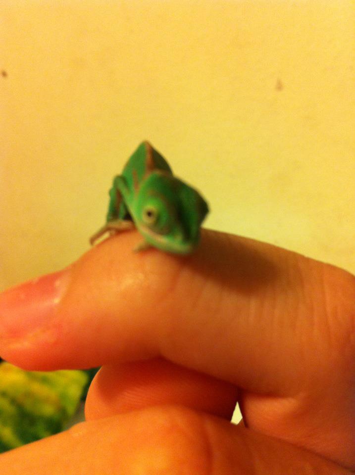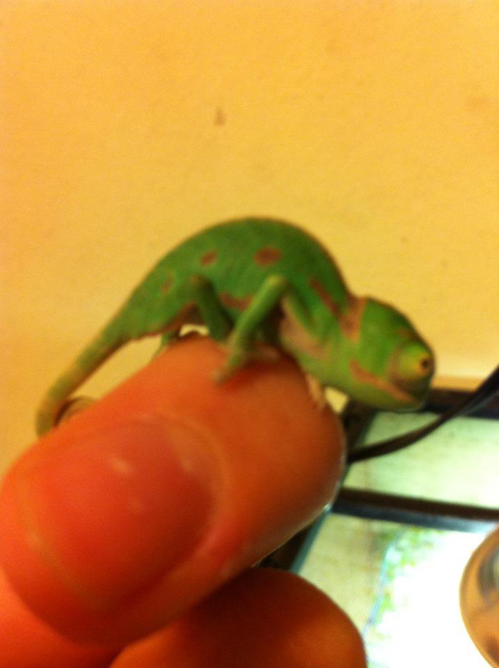 Hello, welcome to the forum to you and little Kaida :) That's a proper baby Chameleon! Everyone worries a lot about their first Cham, but she looks good. She's never too young to go outside for a while, but of course you need to make sure she's in a secure enclosure all the time.