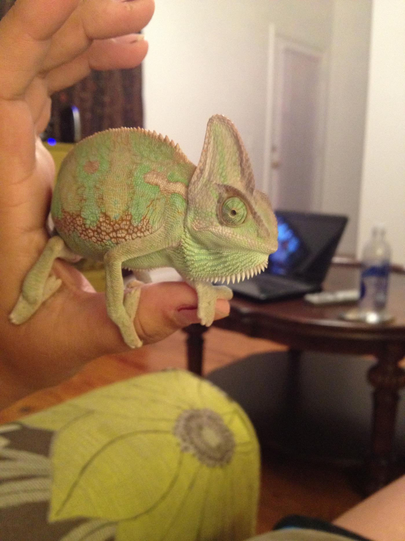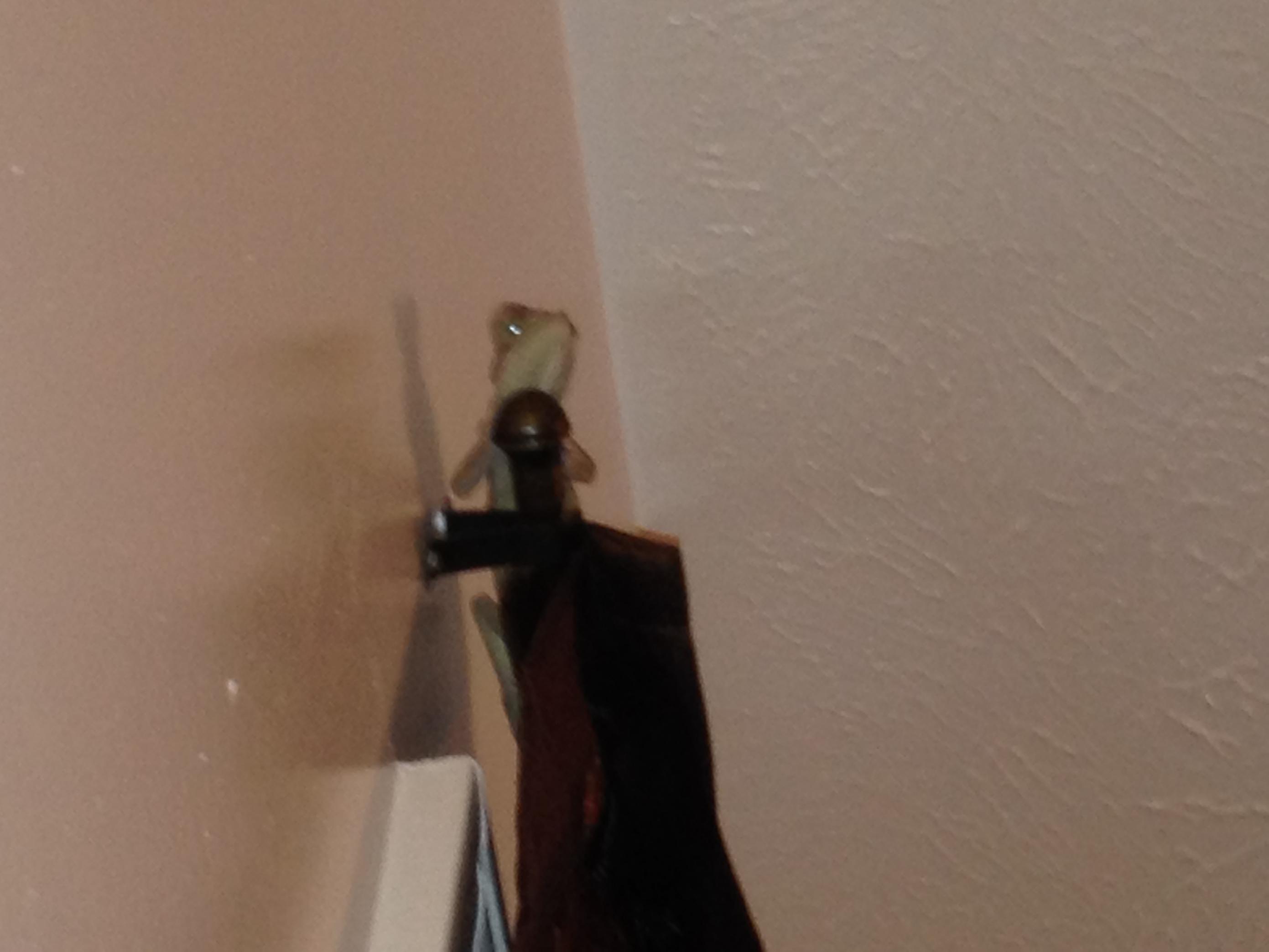 While doing homework, the roommate looks up to think on a question, and gets this awful look on her face. Panicking about what is above my head, I look up to see this!
