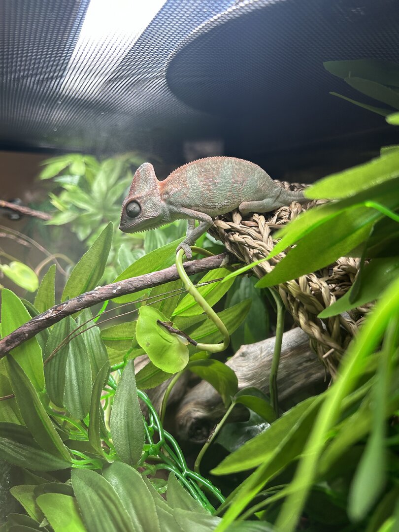Watering - I have a water bottle I spray over the plants three times a day for a few minutes and a mister that is on at 8am and again at night before bed at 7pm for 10 mins I’m not seeing him drink