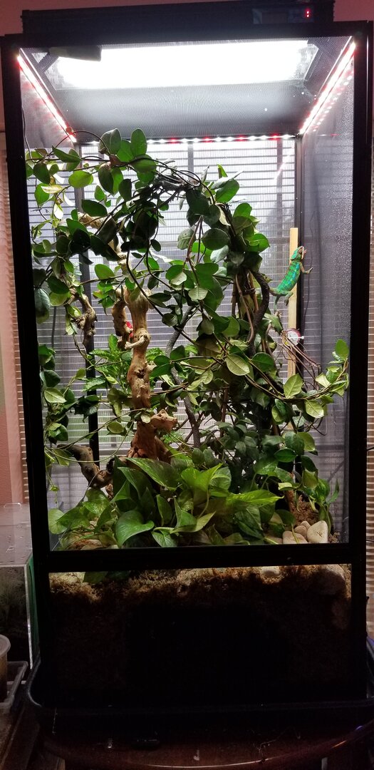 I still have to set up the drip and/or the DIY misting/rain setup that I'm looking into. But that's okay I've been missing him like four or five times a day for weeks just to keep the humidity up to even 60%.