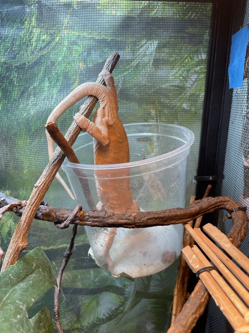 Lastly I have a dripper set up, 1 drop every 2-3 seconds that goes for the first few hours of the day. I do see her drinking from this on occasion.