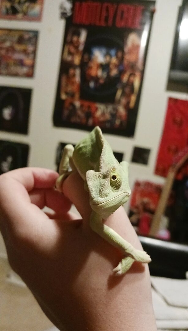For some information regarding my pet, I have around a 1.5 year old female veiled chameleon that I bought from PetSmart, she is super friendly and healthy! She has laid around 30 infertile eggs a couple months ago, but I noticed she recently has gotten big again with some orange coloration that she had during the last time. I recently noticed that the other day when I gave her water, I believe she drank it wrong cause right after she started tilting her head up in the air. At first I thought it due to her swallowing the water, but it went on for a couple hours until I started panicking and took her to the vet immediately. The vet prescribed her an oral antibiotic that she has to take every 24 hours since they confirmed that she in fact had a respiratory infection as I had thought, and they also clarified that she definitely had eggs,