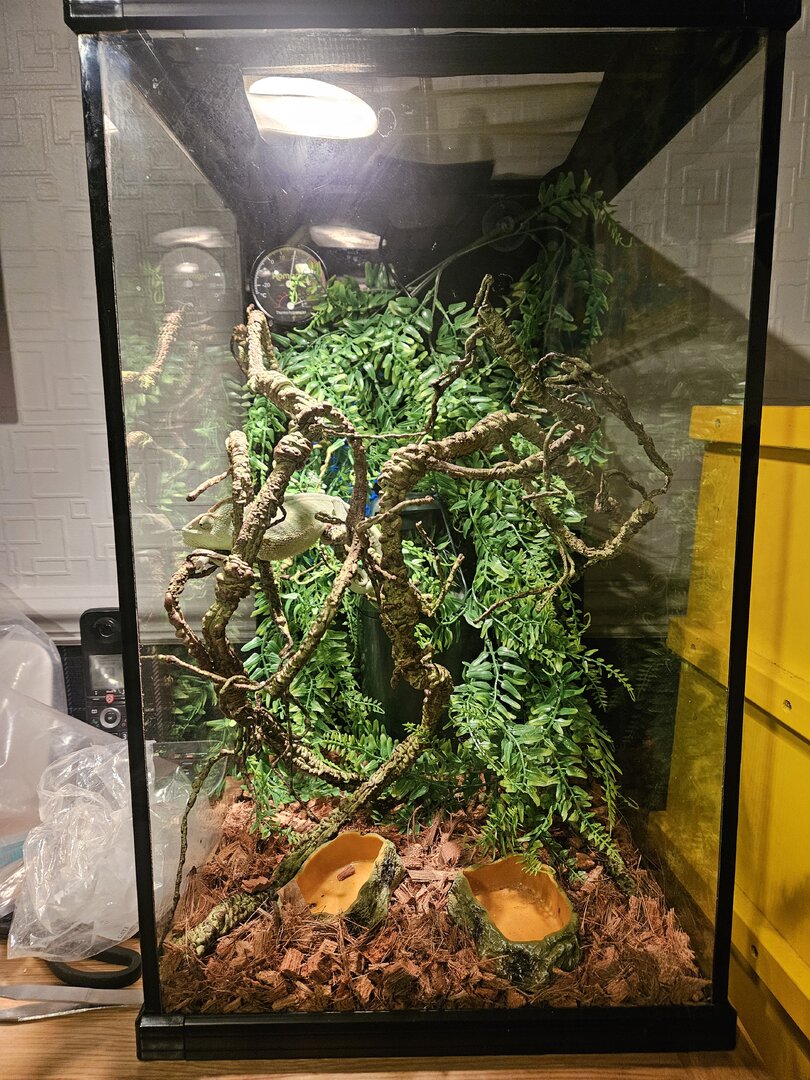 New chameleon mum, yesterday I inserted a chameleon from a friend. I've been researching to make sure I can be the best mum possible, new bigger terrarium ordered, better food, ceramic, uva and b ect... all due this week.