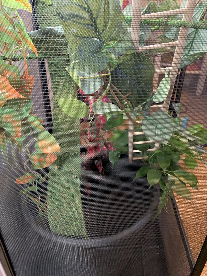 Current Problem: 1.) How’s her new setup? Any tips or advice to improve? 2.) Female has been super content but last few days seems to me sniffing around bottom of cage. We have set up a laying pot. Not sure how good of a job we did but just put her in new enclosure today. Photos attached are of old enclosure and new enclosure. Also photos to show that she seems to be a bit round. This is just lately. But is that too early for her to have eggs?