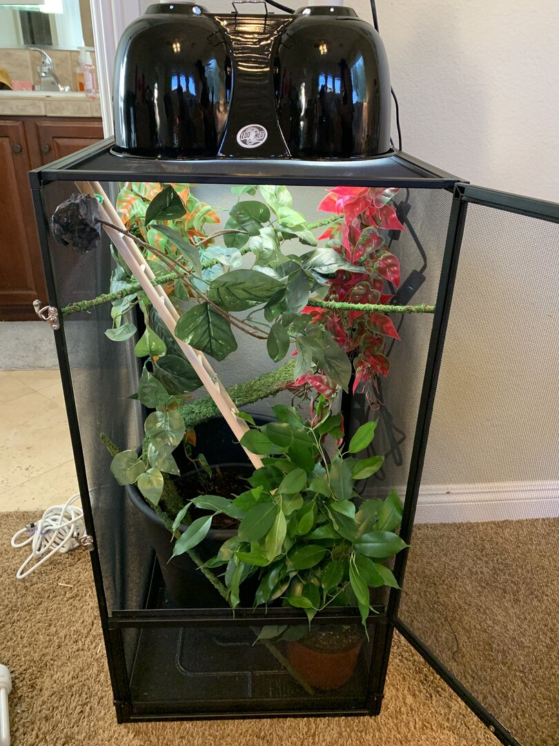 •Lighting - Both zoomed, 60 W daylight blue, 5.0 reptisun with UVB. On at 7am. Off at 7pm.