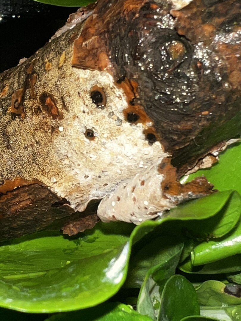 Just now i was checking up on his enclosure plants since i wanted to clean the bottom of his enclosure and noticed on a few sticks there were some weird white little circles that come off when i touch them, I also saw some small fungus growth so i cut off that part of the stick because i didnt want to completely get rid of it since its the base that holds all the other sticks in the enclosure. When i took these from outside i cleaned them with water and dish soap but i'm not sure. I also saw really really tiny white bugs inside of the bark of the stick which kind of looked like some sort of isopods but i'm not sure. The only way i can think of possibly fixing this is to allow the enclosure time to dry out but it's not really possible because of his misting routine and fog routine so i'm completely lost and a worried mess. I'm also extremely concerned that this will affect his health so I wanted to come on here and ask you guys if you can help me and if any of you may have experienced the same struggle as me. I'm a completely new chameleon owner and have been super anxious this whole time because i want to be sure he's healthy. I'll also give a picture of the enclosure if that would help but not too sure if it's relevant