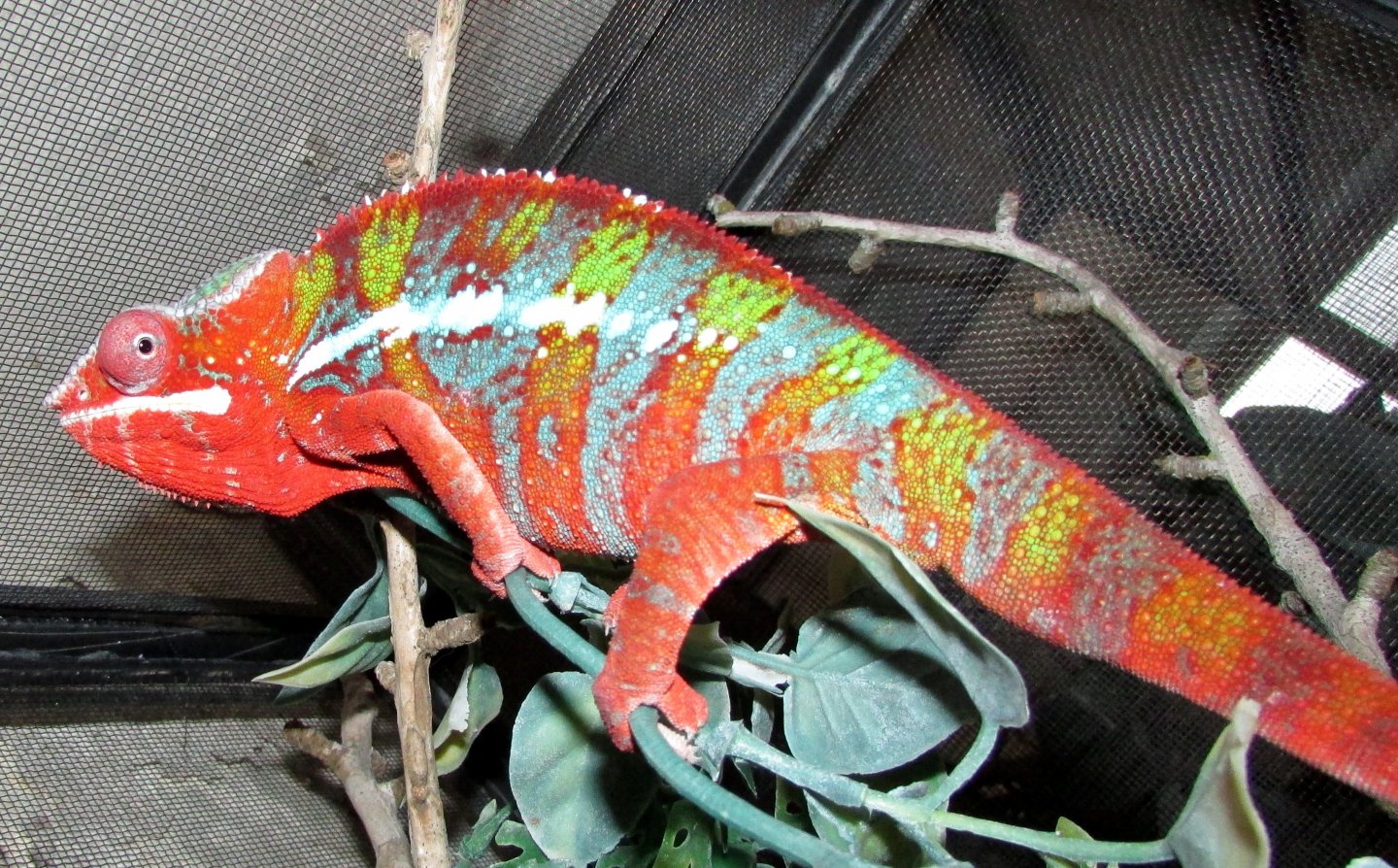 OK Janet, normally I wouldn't post a picture that wasn't more aesthetically pleasing. His normal colors are still intense. But the lighting in the cham room isn't optimal. I find the best lighting is in the late afternoon when the fog comes in and diffuses the light. Second pic is outdoors through the screen but the sun is out and washes out color. Pics are backwards, first is outside in the sun , second is in the cham roomView attachment 190703