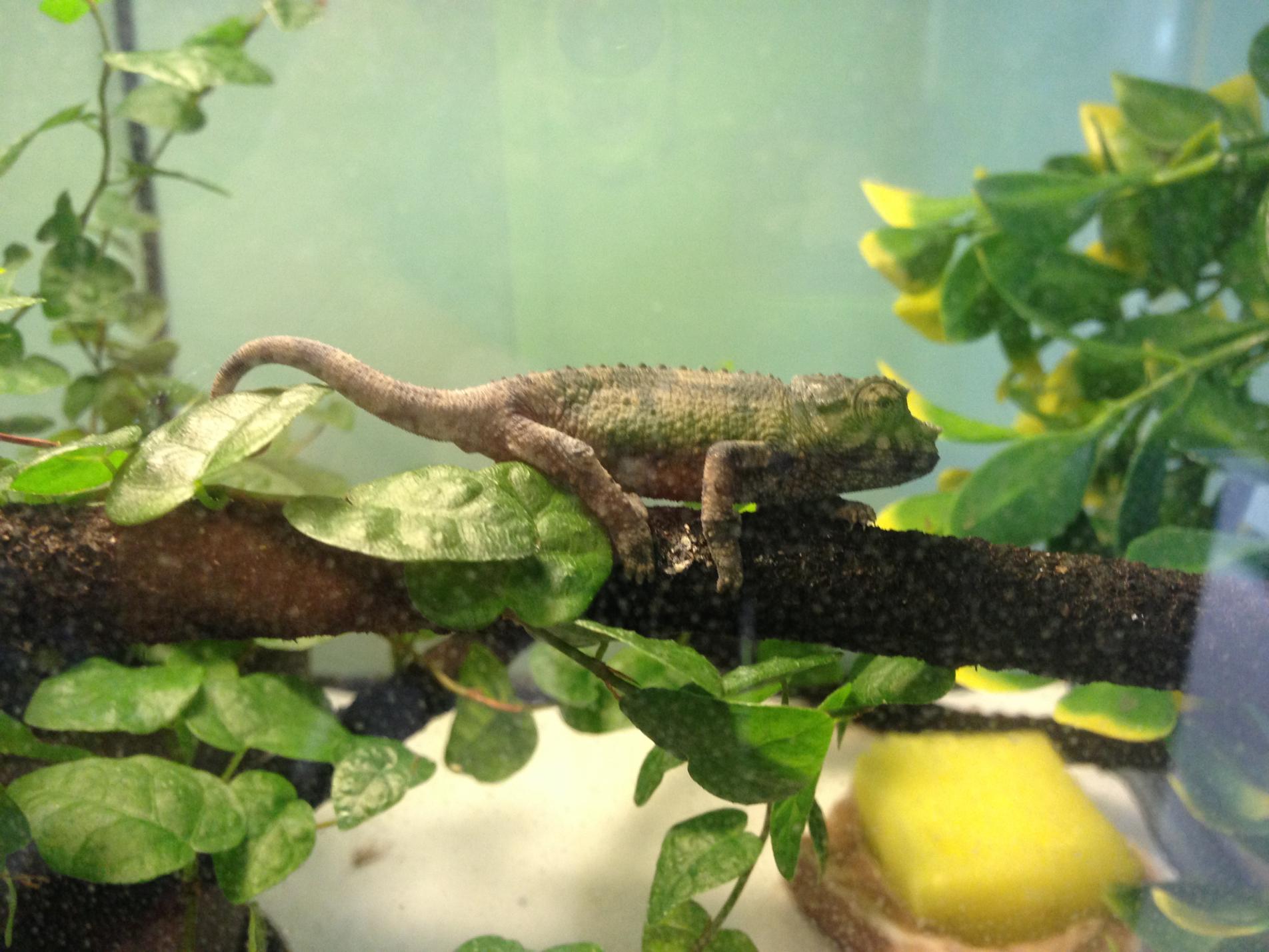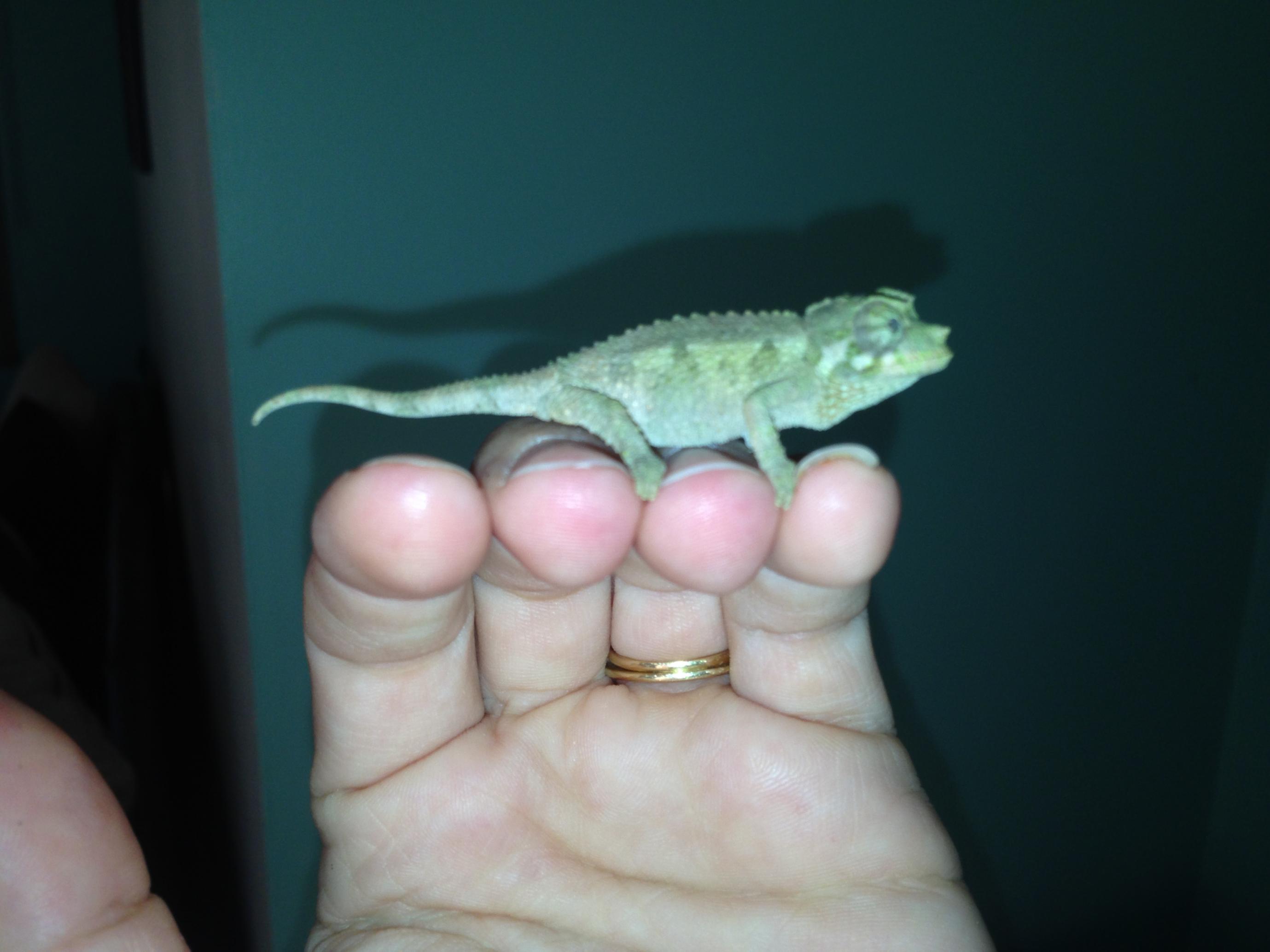 Your Chameleon - Jackson (not sure what kind), sex - Male I think, and age of your chameleon - He is almost 4 months. How long has it been in your care? Since Birth 8/23/14