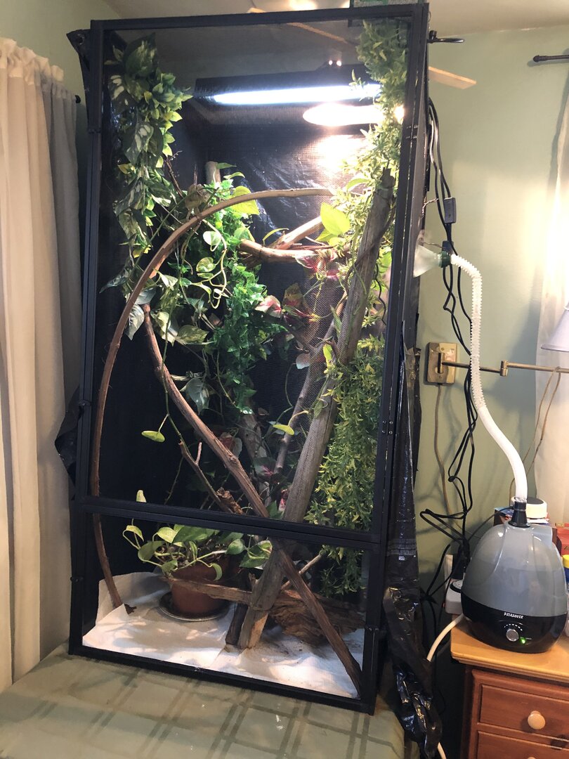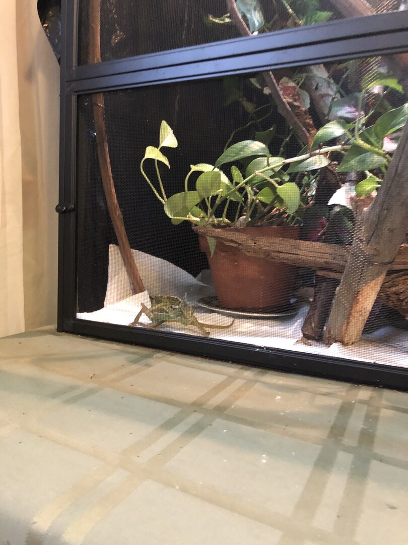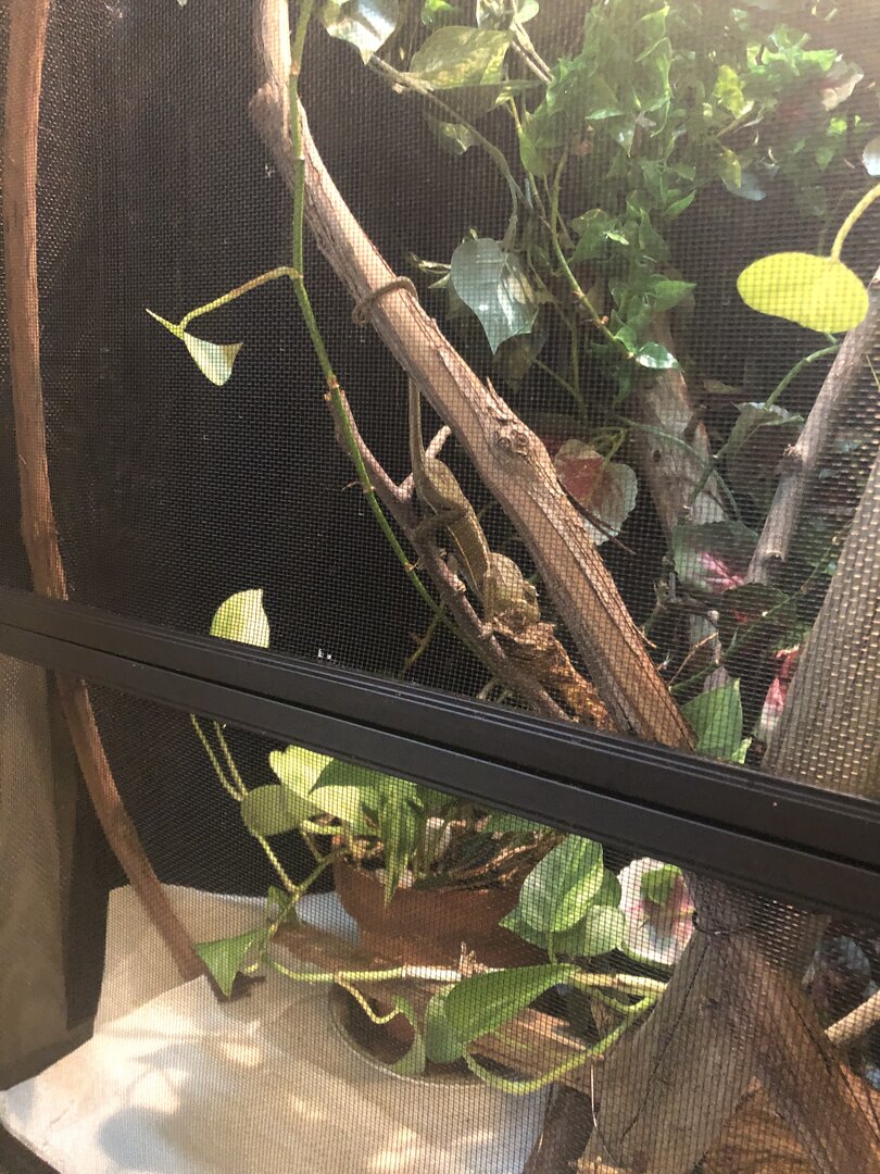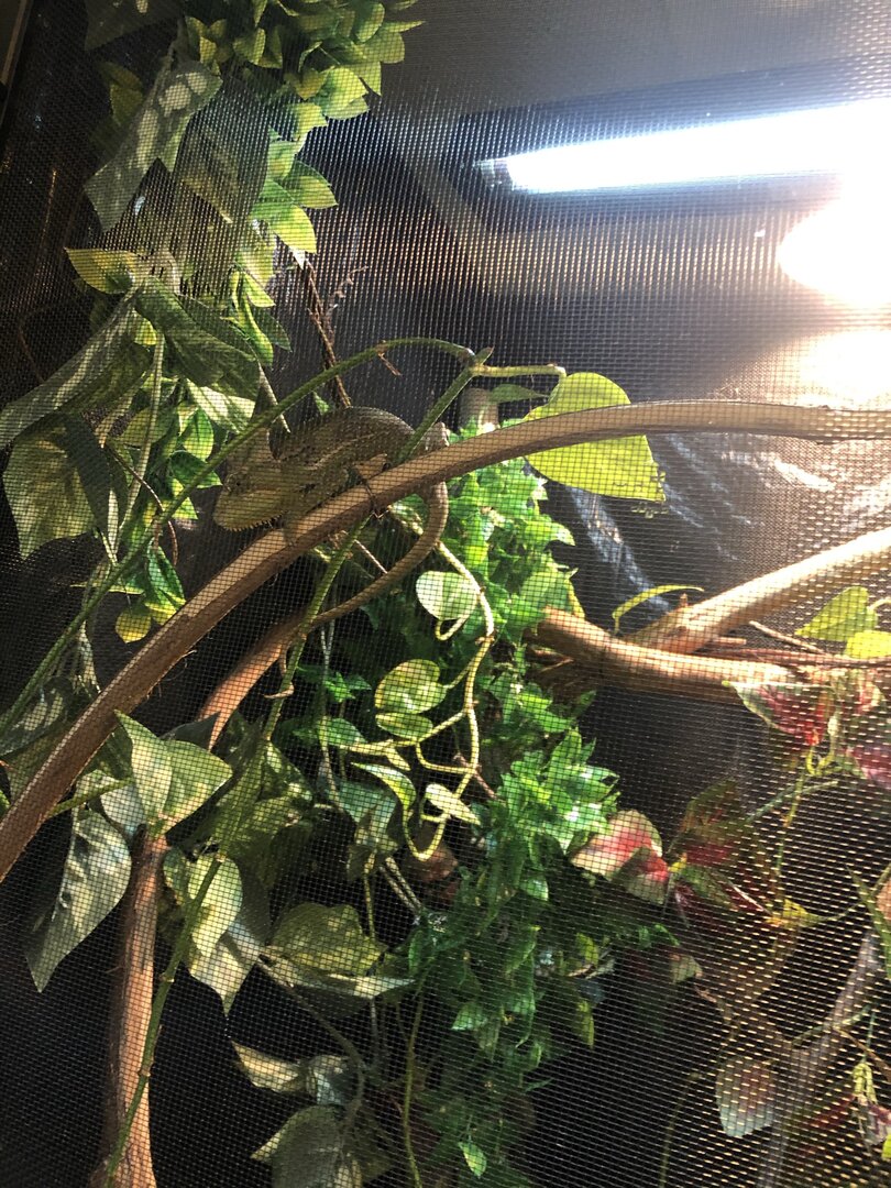 Hi guys! I just got my veiled chameleon this past weekend. He is a male, and I was told he is a sub adult (6-12 months). I currently feed him about 5 crickets a day. (I will be expanding that diet soon!). Does he look healthy to you all? Am I feeding him the right amount?