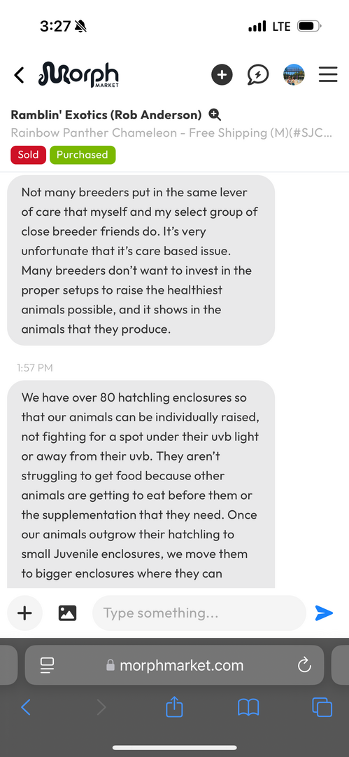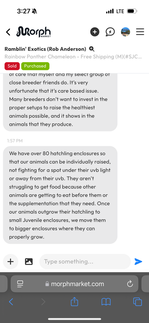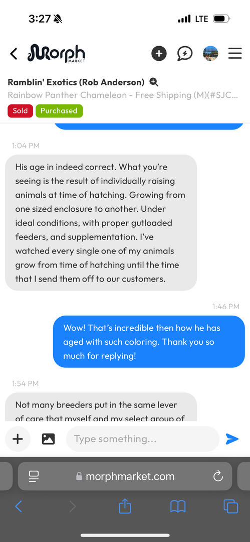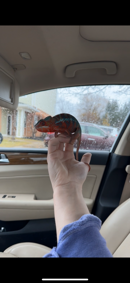 So I got my male panther chameleon on March 5 from a morph market breeder. I posted him on Reddit and individuals were commenting that there’s no way he’s 5 months old now, since his colors are too bright and he seems too big. I asked the breeder (who seems very reputable), and he responded that the hatch date is correct. I included screenshots from his response as well as pics of my chameleon I’ve taken recently for reference. I do think in comparison to what I’ve seen on Google, he does seem to be too colorful/big for a 5 month old? But idk.