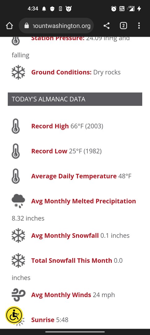 Was also interested and being in the North East had to dig into this!! You never know! Could be at the research station up there! This is Mt. Washington summit look at that average daily !