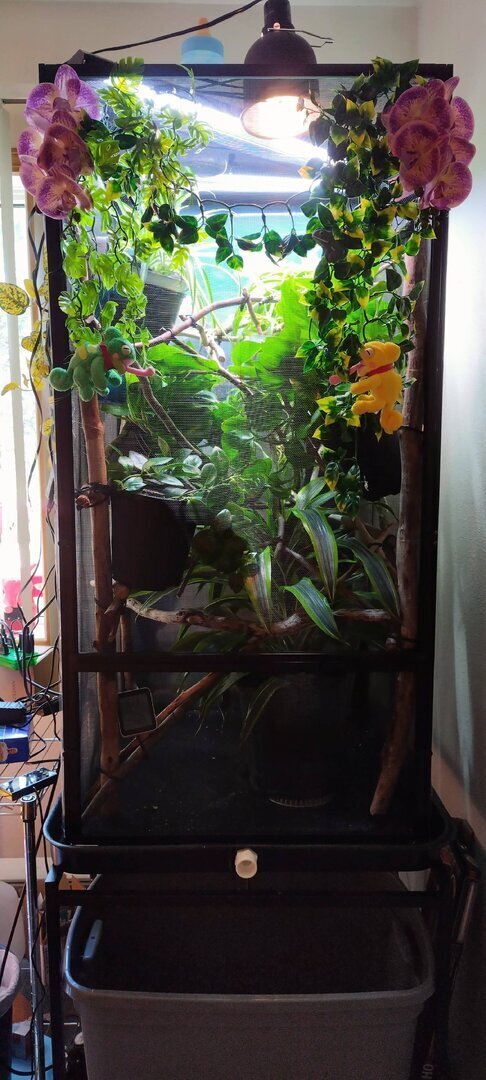 Do you guys think it is good enough now? Or should I add more things? I think he has enough but I have another plant that is safe for him outside.