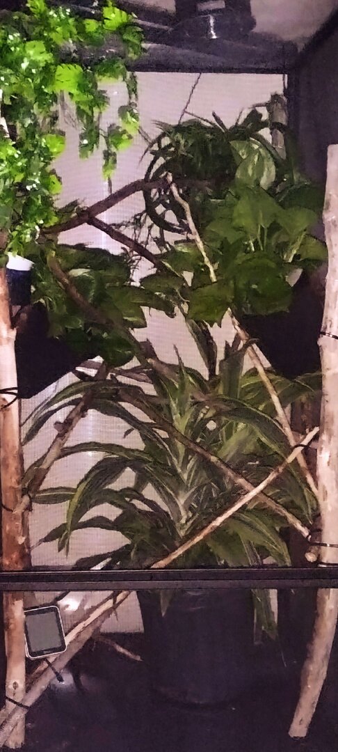 Hi, sorry but by the time I found this I already went to a plant nursery and got some more plants. I think it looks better I also cleaned out his cage because it had a lot of poop in it. He’s now confused by all the plants it kinda cute to watch.