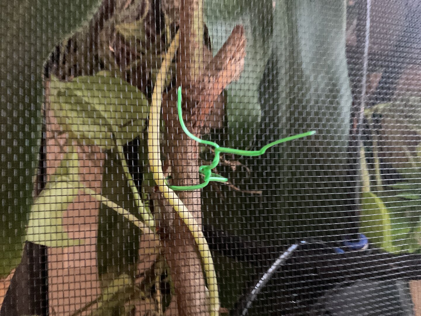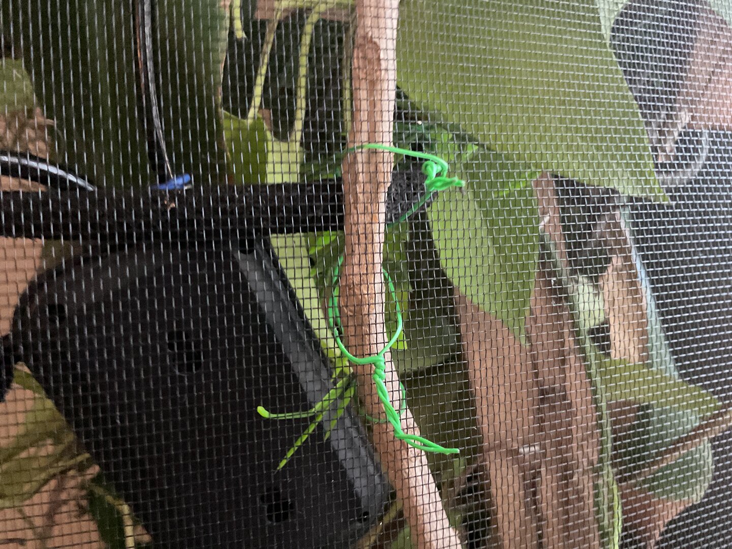 I used zip ties, yeah. They're more hefty and keep my pots standing strong. You want to affix plants to branches. I use plastic pots and stab two holes near the top of a pot that is like...The support pot, and then have the actual pot the plant is in rest inside the support pot. So they're double potted. if one goes bad, I can take out the plant and still have the layout in tact, if that makes sense.