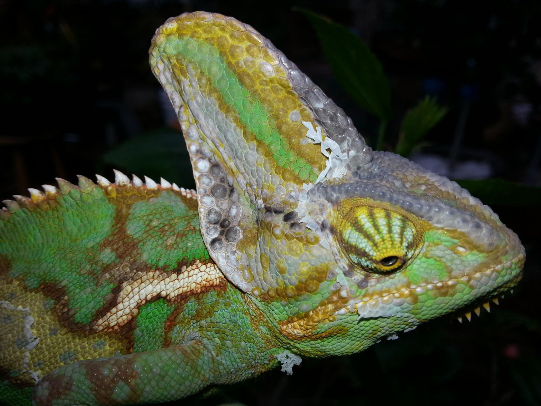 Today I had Graeton Veiled outside to take some pictures and I noticed some black spots on his head. It seems limited to the actual scale itself. He seems to have the same pattern on both sides of his head, so I am inclined to think it is normal markings/color. There is nothing behind his casque. Thoughts?