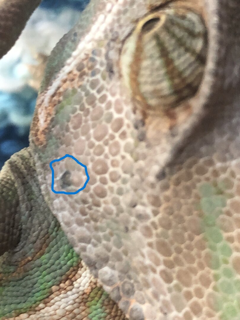 Chameleons don't have an outer ear, so you won't have to worry about his ear holes closing up!