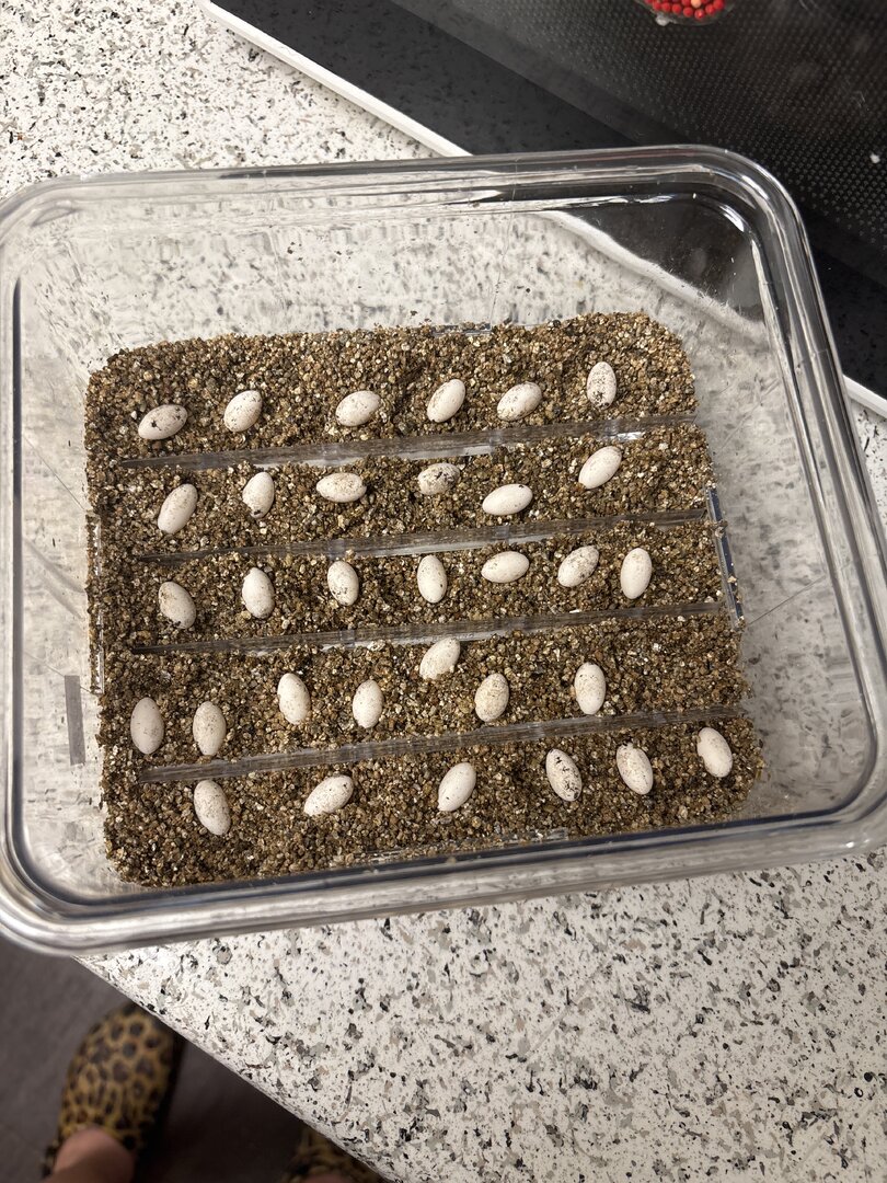 Wait ? Is that possible? So you are saying that not only these eggs are fertile but the next batch can too!? How is that? Oh wow… and thank you she was 2 months when we got her . I won’t forget thanksOmg she is beautiful and had a full clutch of eggs! How exiting! Now don't forget to setup a calandar so you can take them out if the closet 20-30 days before they are ready to hatch so you can keep an eye on them and get ready. good luck. She needs a bunch of treats for doing such a good job. Also even if you don't mate her for the next batch of eggs, they could be fertile so you will have to treat them as fertile eggs!