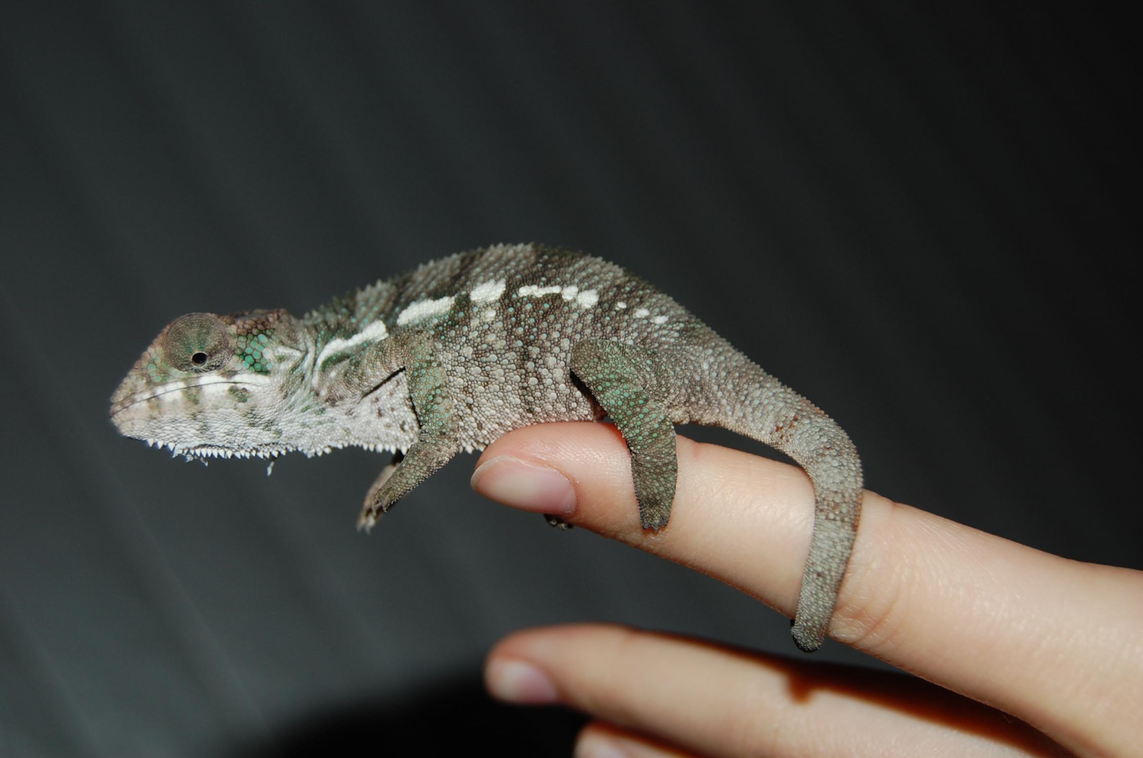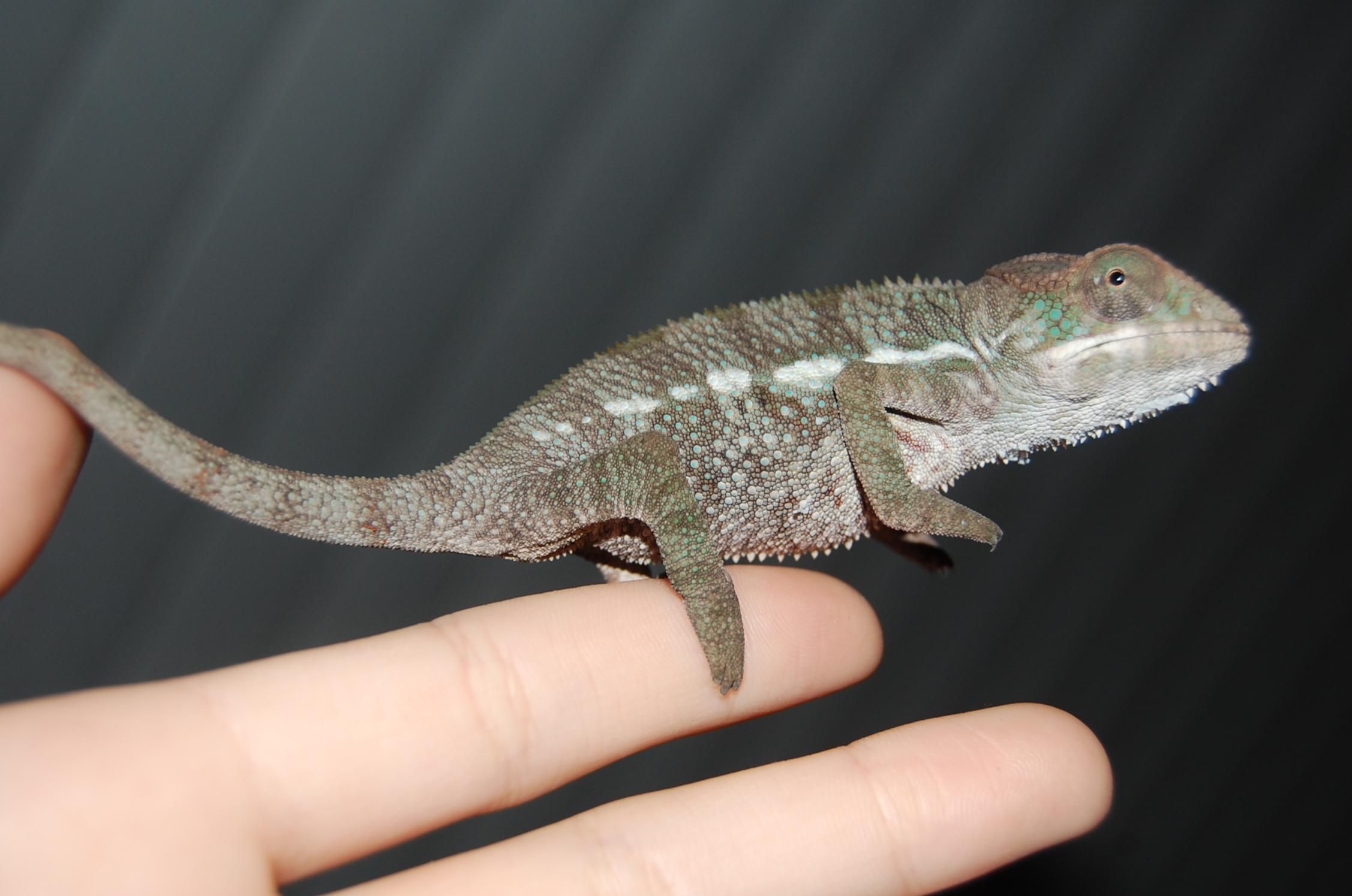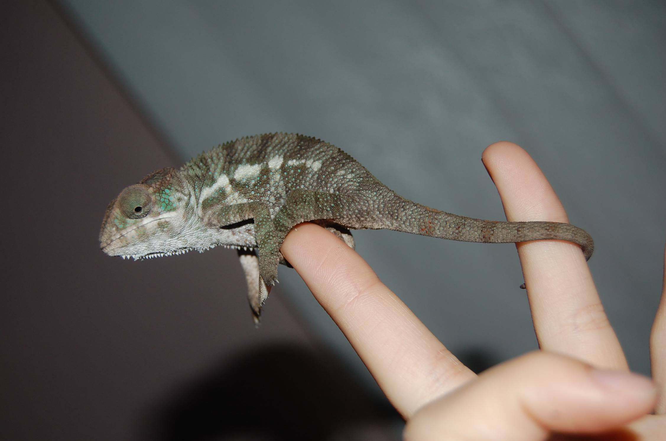 Hey all. My 8 month old female panther chameleon isn't very pink/purple. Everyone is always talking about their pretty pink girls