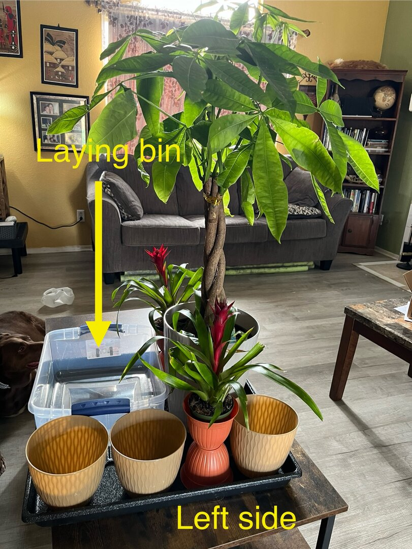 I got Sweet Caroline’s adult enclosure. The size is overwhelming (I’m used to crested geckos and snakes) but I’m learning everything I possibly can. The structure is a bit flimsy for my liking so I want to reinforce the seams before I do work inside the actual cage. For now I removed the drip tray and I think I’ve got my bottom layer figured out. I’m going to plant creeping figs in the tan containers, fingers crossed they creep up the walls. I have lots of pothos, prayer plants and a gorgeous lipstick plant with lots of hanging vines to put higher up in the enclosure and I made sure I put the lay bin in the back so she has more privacy when the time comes. The bromeliads give a little color, perhaps just aesthetic. My mom sent over a big box of branches from her trees. Looking forward to working more on this, but what are everyone’s thoughts so far?