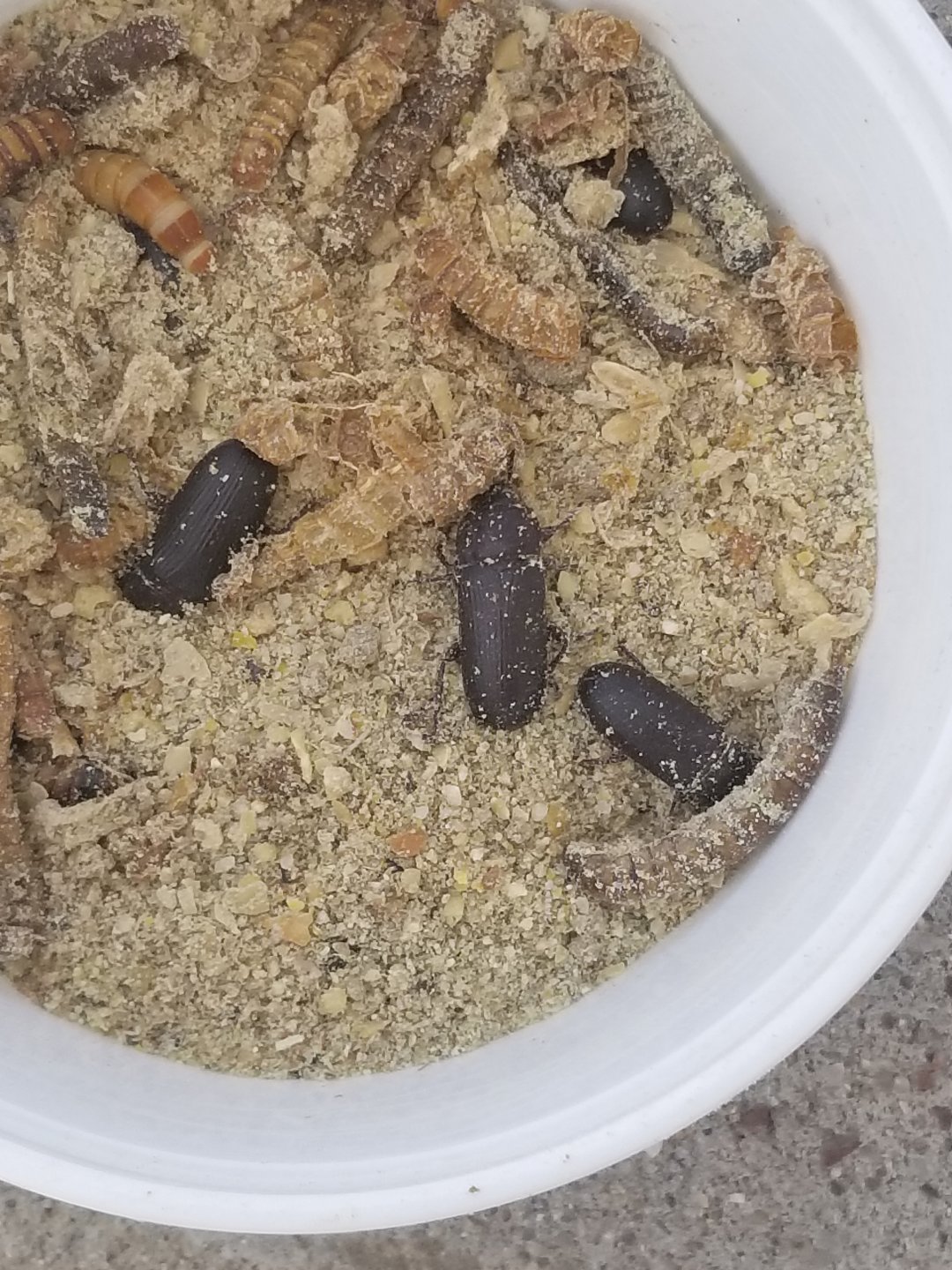 Ok guys, so I had a small container of meal worms that I bought a couple weeks ago right before my Cham died. I had been saving them for fishing. Today I opened up the container and saw like 8 of these black Beatle looking things, they are not crickets, I'm sure of that, I have no clue what they are. Just wondering if anyone has had this happen to them or knows what these are.