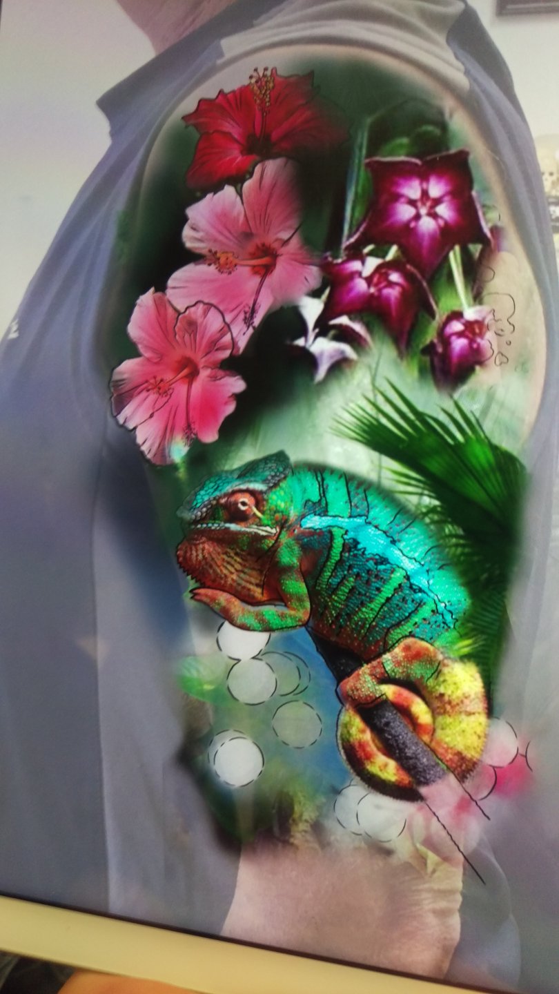 Yes it's tattoo time for me next this coming Saturday. Just want to know what your thoughts are. There is more work his tail to be done, touch ups ,and a little more background work also . Anyways so far looks pretty good . Yes this is my Boy Rainbow . It's going to be a half sleeve when finished,open to more work further down my arm in the future . Here is the Digital rendering so far