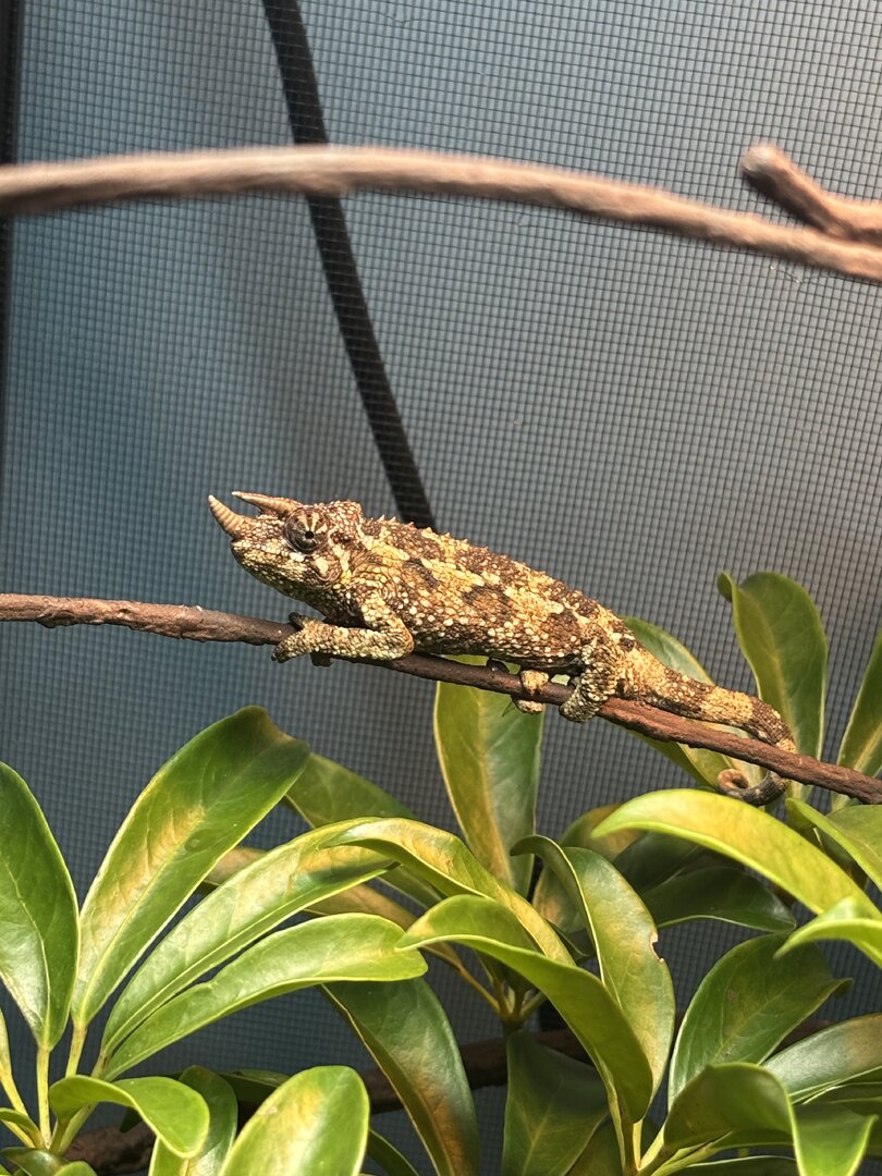 Hey cham fam! I went to a reptile show this past weekend and in the excitement of it all found myself under ownership of a young jacksons chameleon. Shortly after the excitement of my purchase I then realized I know nothing about this animal and started to panic. I was hoping some Jackson’s lovers could take a look at him and possibly identify his sub species. Not sure if they need to mature more to tell but I figured it couldn’t hurt to reach out to the community. Also any advice for their care is welcomed as I have no experience with Jackson’s and am just going off my research and watching a lot of chameleon academy 🤣 thanks bill! Here are some photos of a little guy. He also needs a name!