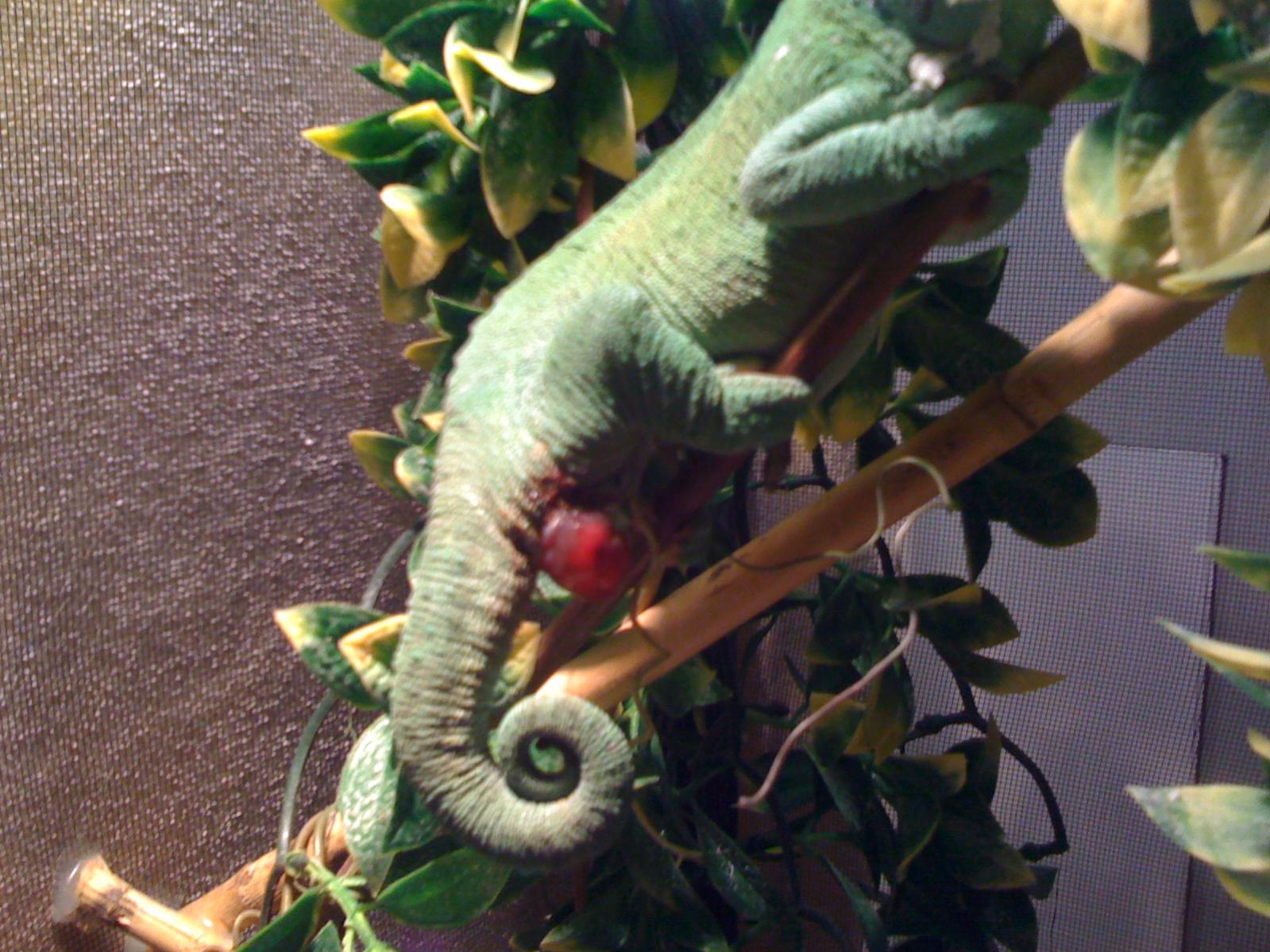 My 1 1/2 yr old female Jackson pooped and now has a large round bulb under her tail and it looks like it is filled with blood. Is there anything I can do short of taking her to the vet?