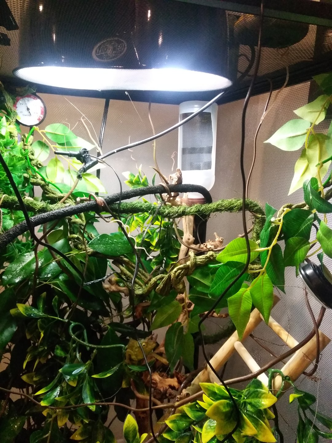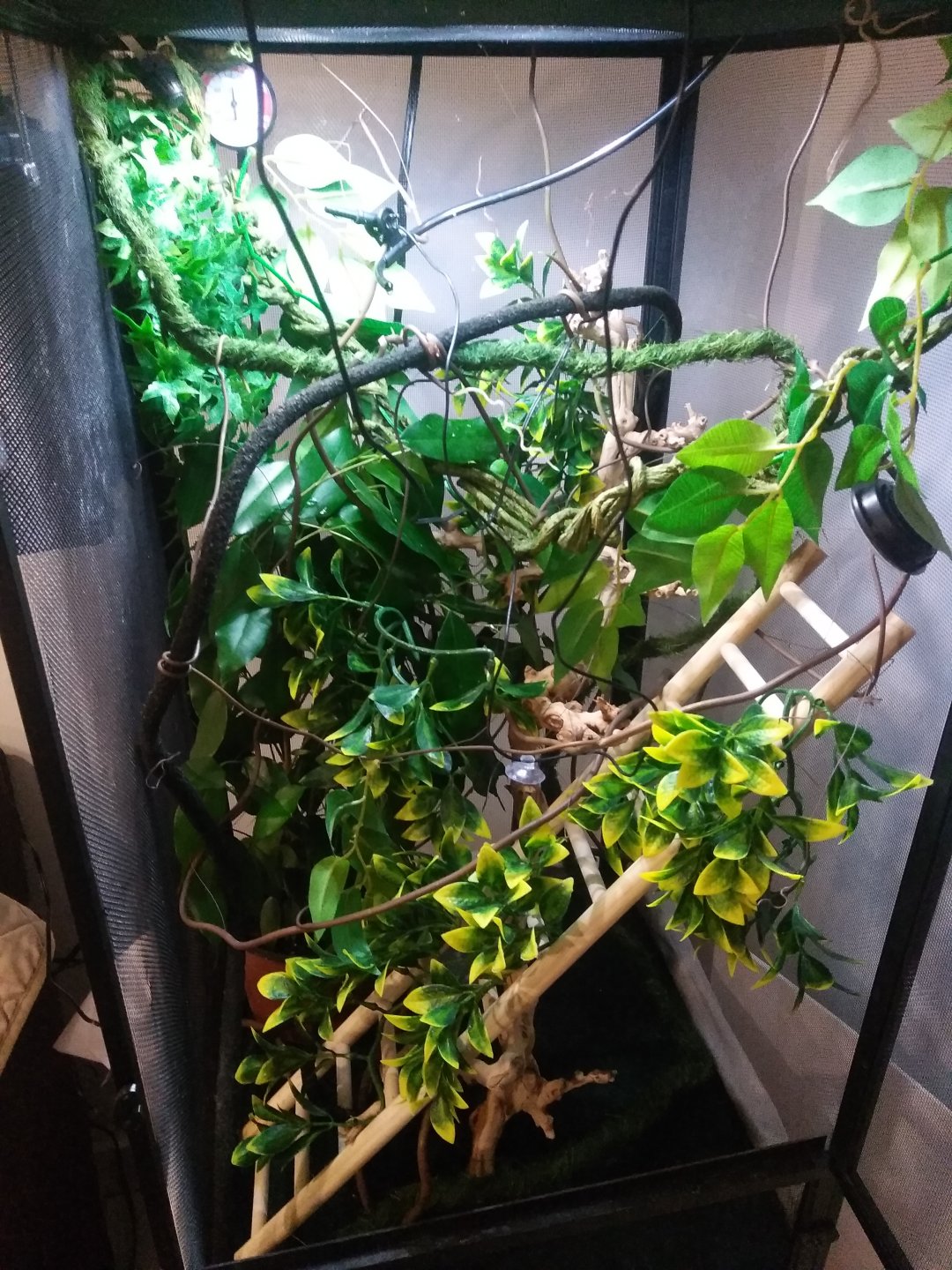 Just finished my enclosure for Dio he seems to be loving it and exploring every inch. My only concerns is that the crickets seem to be able to hide in places he cant quite see or get to. He is also very dark most of the time but i know my temps are good. I also am looking for an easy DIY drainage system if anyone has suggestions.
