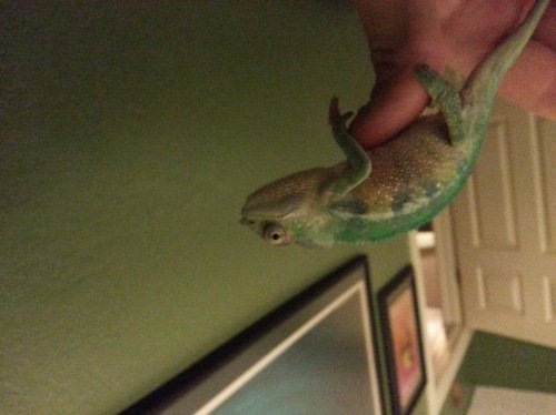 So It is officially two weeks today, and I got him being grumpy basking after fattening himself up. But here he is looking really green. (probably cause he was basking):D:D