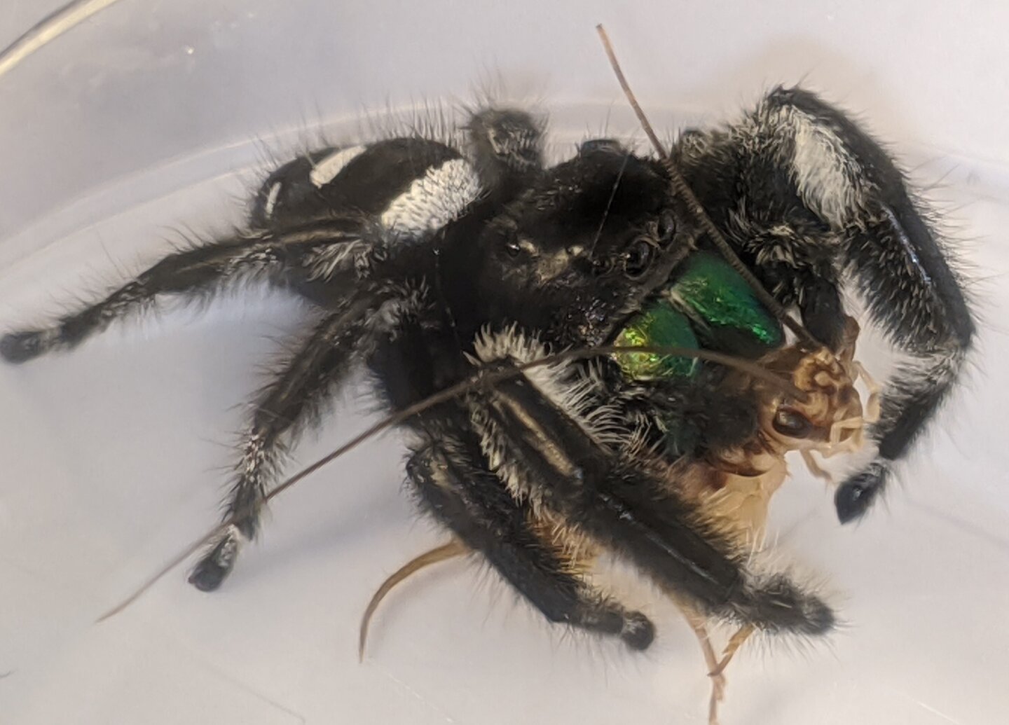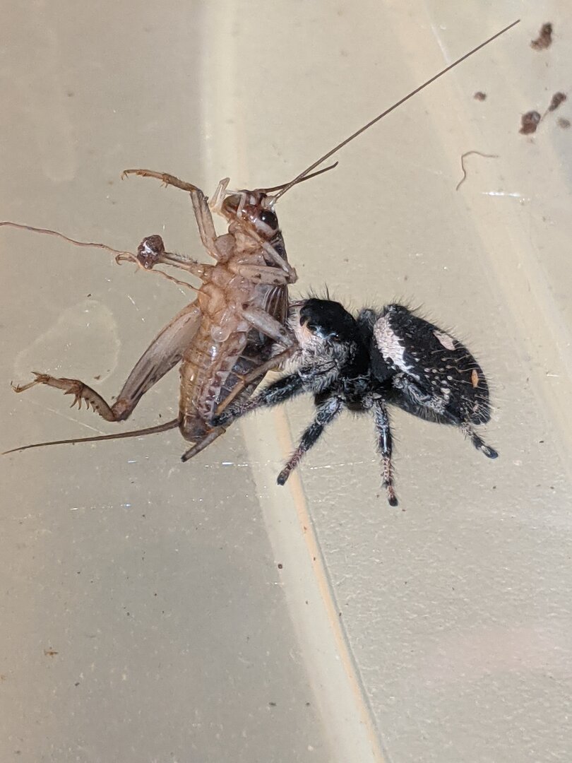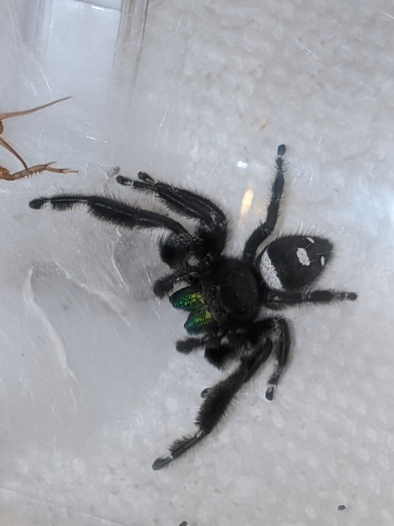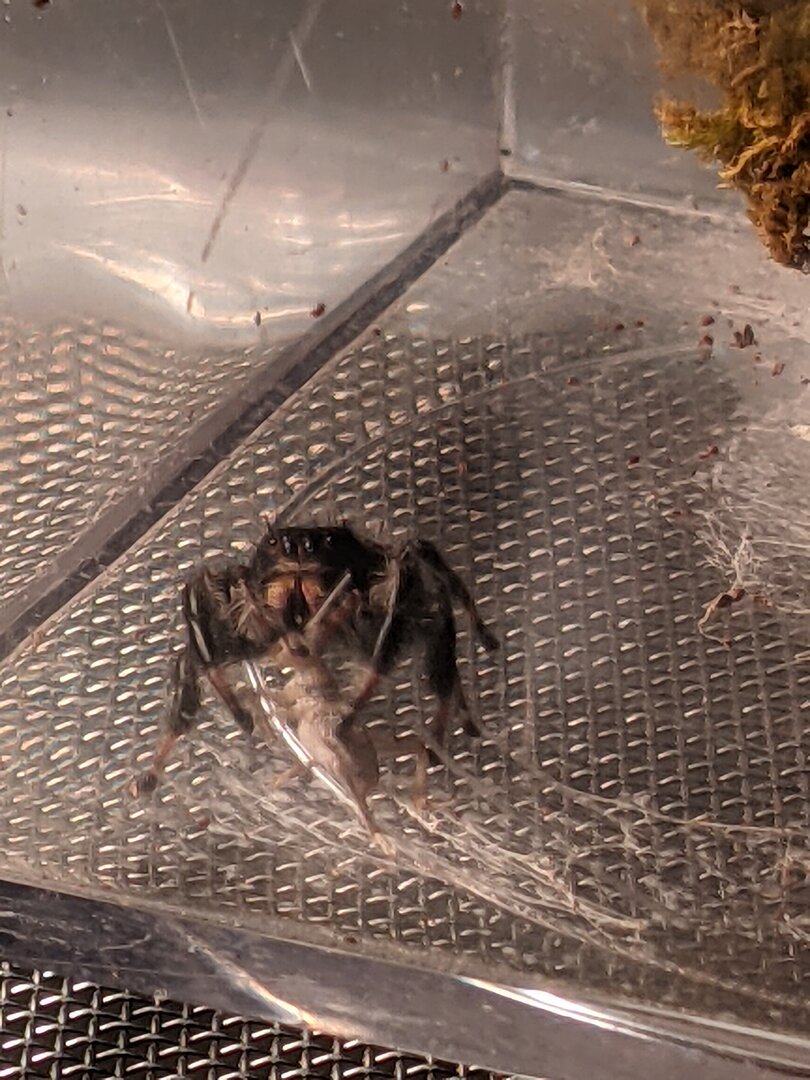 Who else likes spiders too? IMO jumping spiders are the best, this is a phiddipus borealis found in the bathroom. She is very docile, I had her for ~3 months, cricket every couple days and occasional misting kept her happy!