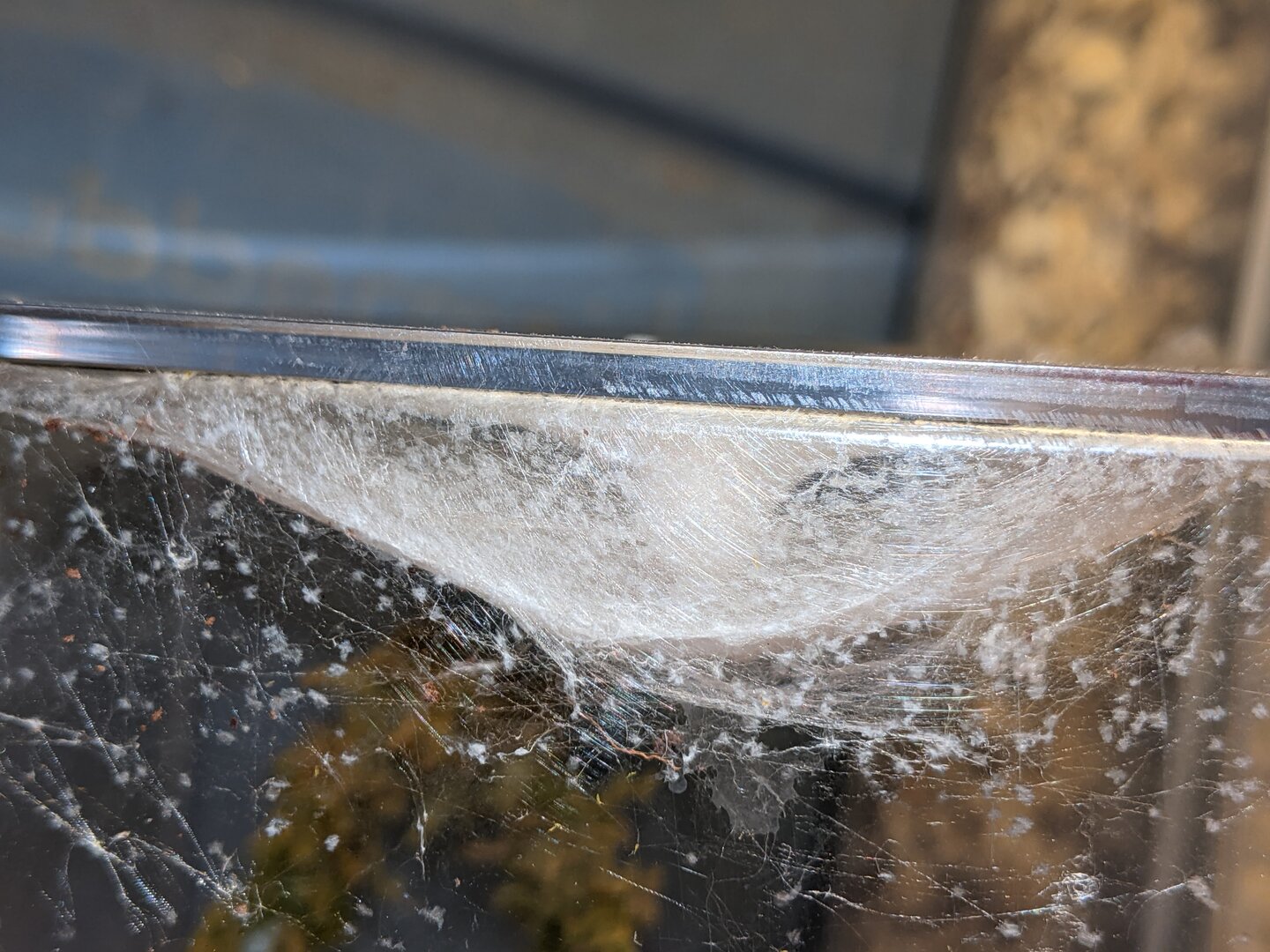 Today the mama spider finally came out of her nest. She has been in the nest protecting the eggs and now babies for almost 3.5 months. No food or water just on a extended siesta (nap).