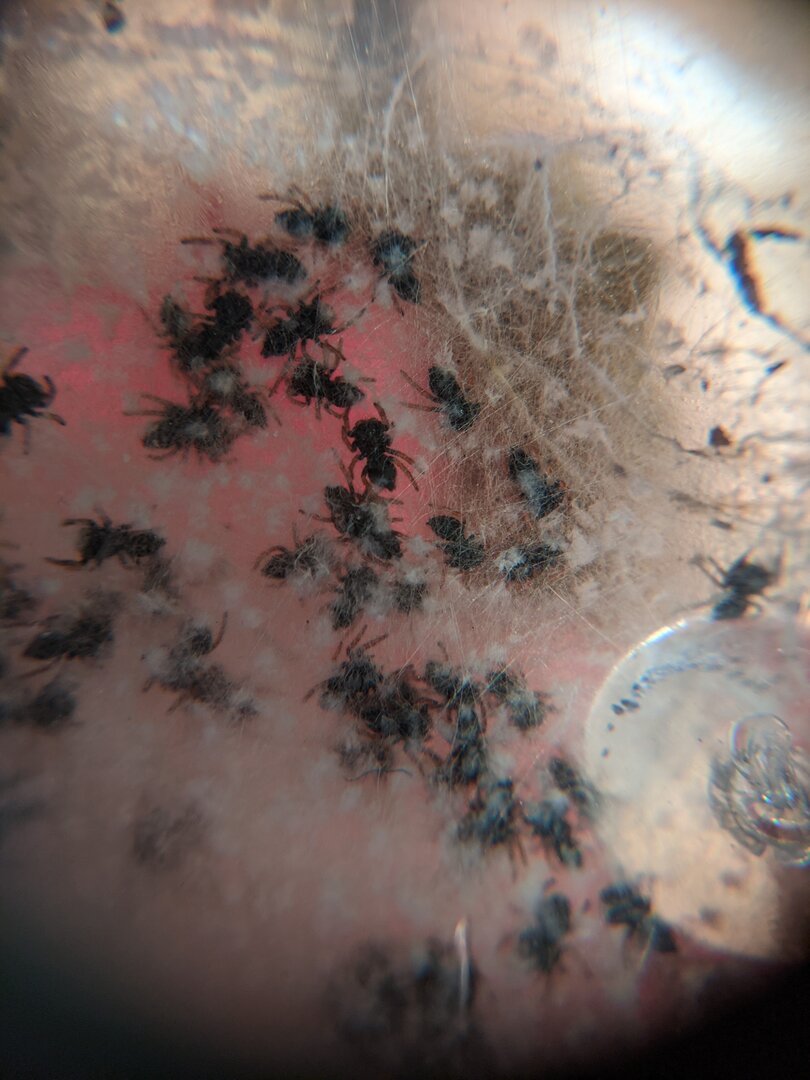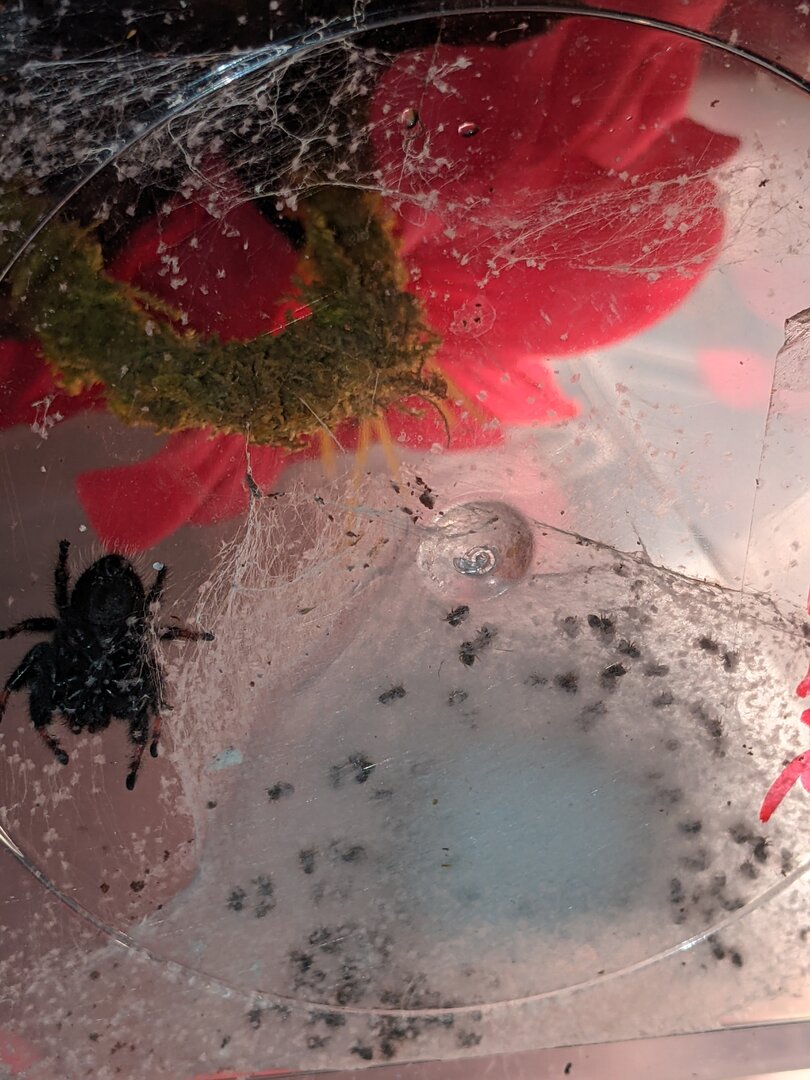Yeah- watched a few videos of these guys about 5 months ago. Then one of the venders had some in stock so figured, we are in lock down and can't go anywhere, why not get a micro pet? I had them separated for a few months and decided to put a male and female together. I thought I was watching the Discovery Channel. I was amazed at the dancing (waiting for one to EAT the other) and how much communication goes on between the 2. Well, the female made a nest (no big deal they make them all the time) but then noticed the egg case. WOW!!!! Then about 20 days later the babies were seen. Today is going on 20 plus days (have to look at calendar) and they seem ready to leave the nest. The next journey begins. I have deli cups ready to separate, I have flies ready to eat, I will just need to find them homes. Regal species