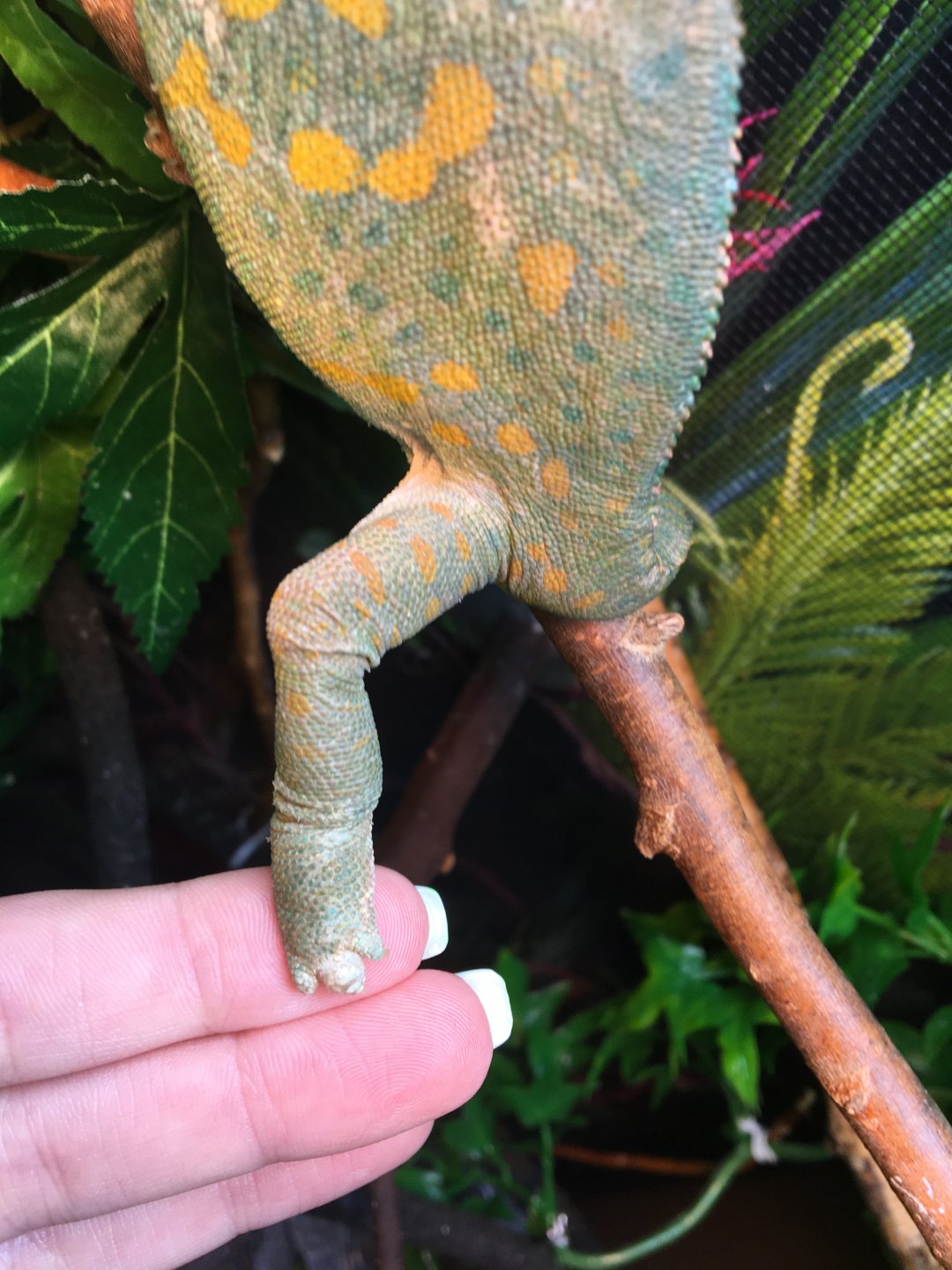 So the other night I was holding my chameleon and I notice that her toe on her back foot was swollen.(I will insert a picture). Should I be worried?