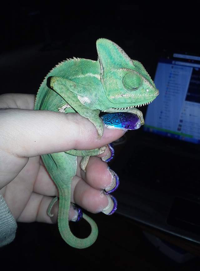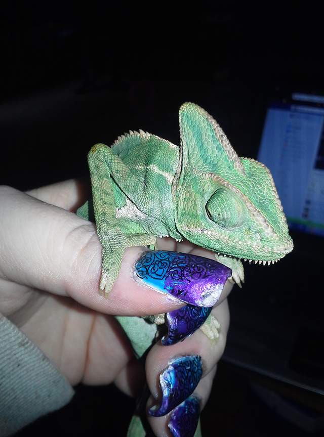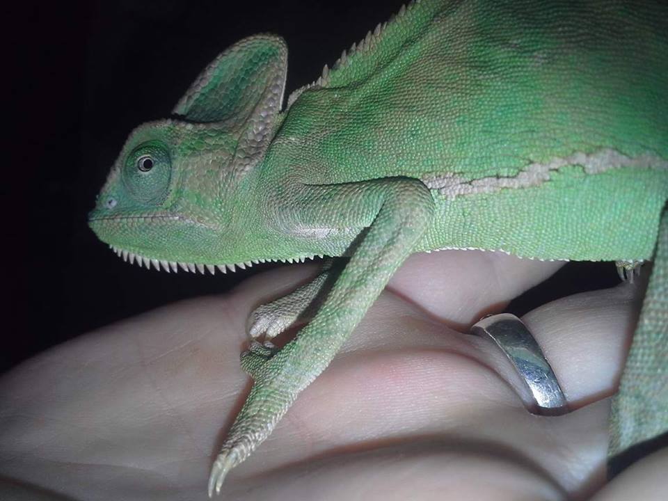 as i said i got a female veiled as a rescue and besides being alittle skinny and weak she seems ok. since teh move last night ive only seen her come out once then i rrearranged and added things to her cage so she could get much closer to her liights. she's too scared and is hiding in a fake plant lol