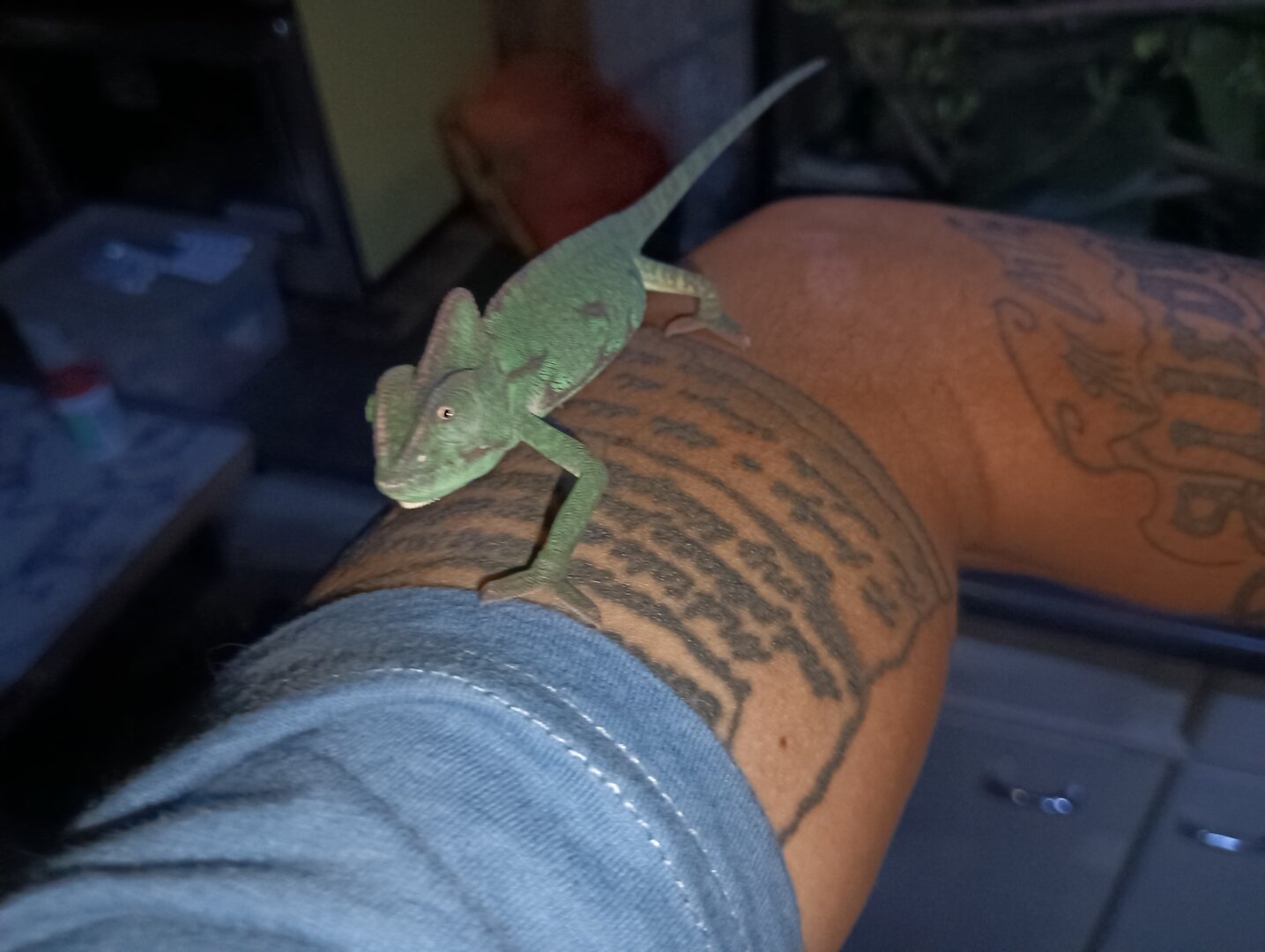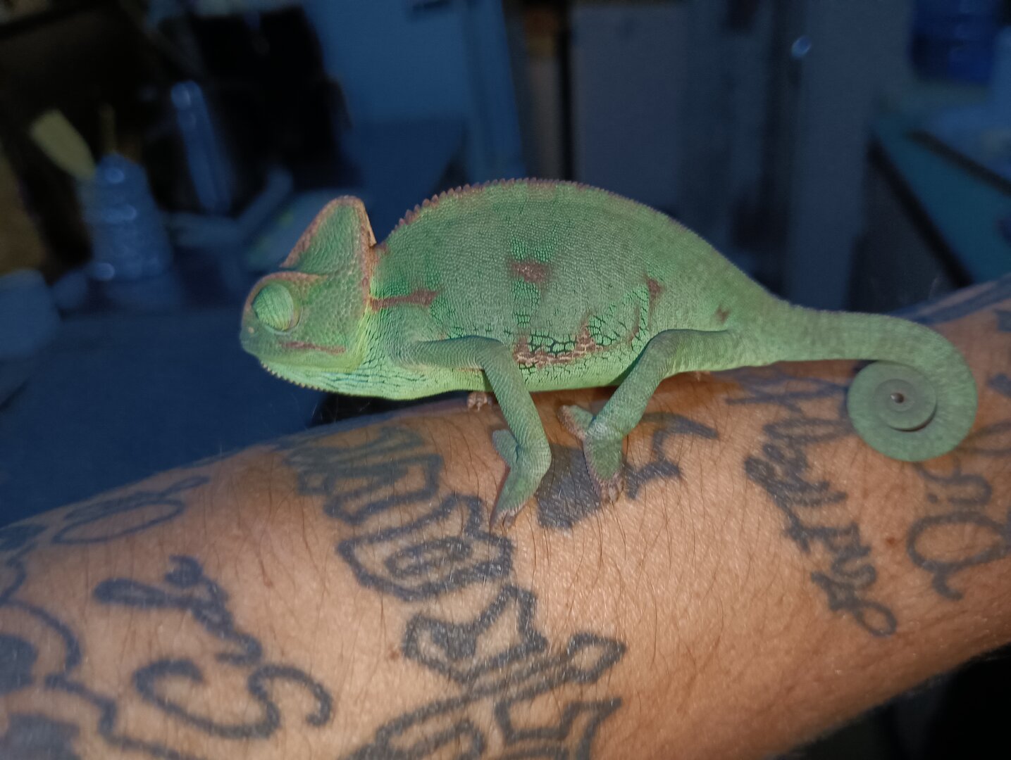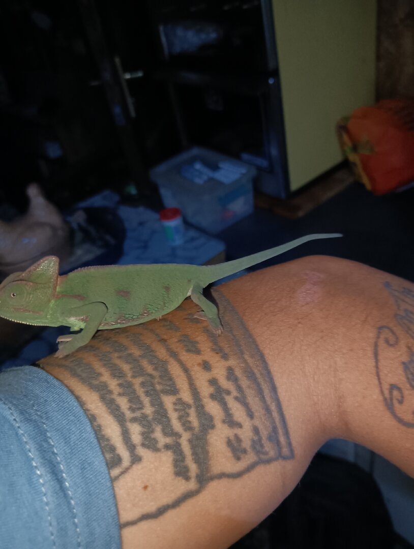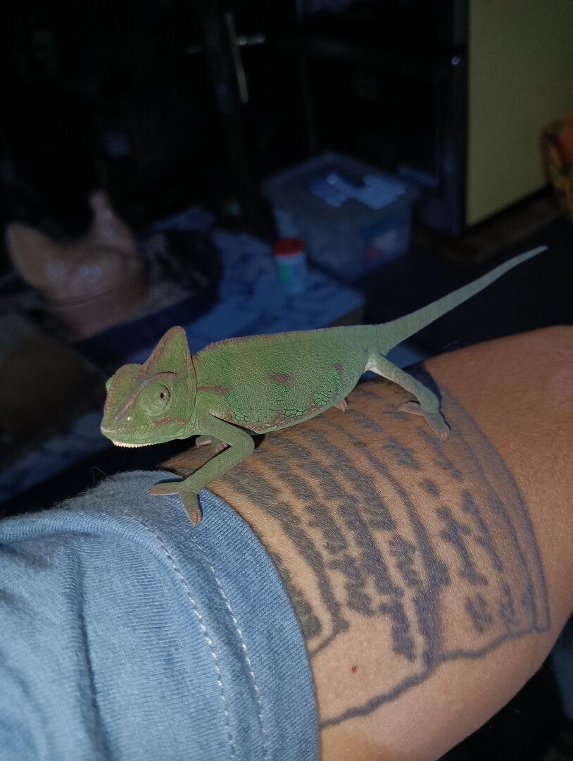 Good evening all so sorry to bother so we have gotten a new baby cam about 3 weeks ago his about 12 weeks old now just wane make sure he looks healthy and still doing well we give him a hour or 2 sunlight and our uvb 5.0 pop so had to get the ice-cream cone globe till we can get a new one in two weeks we moved the heating lamp up so to make sure he does not over heat or get burn