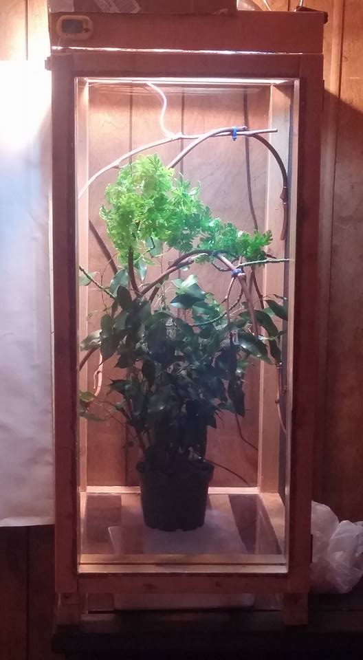 So I built a cage (back to reptibreeze looks cheap and not very good with draining ect.) Its not the nicest cage by far, but its temporary and will be replaced in a few months. For right now the chameleon will live in my bedroom after some serious convincing of my wife lol.